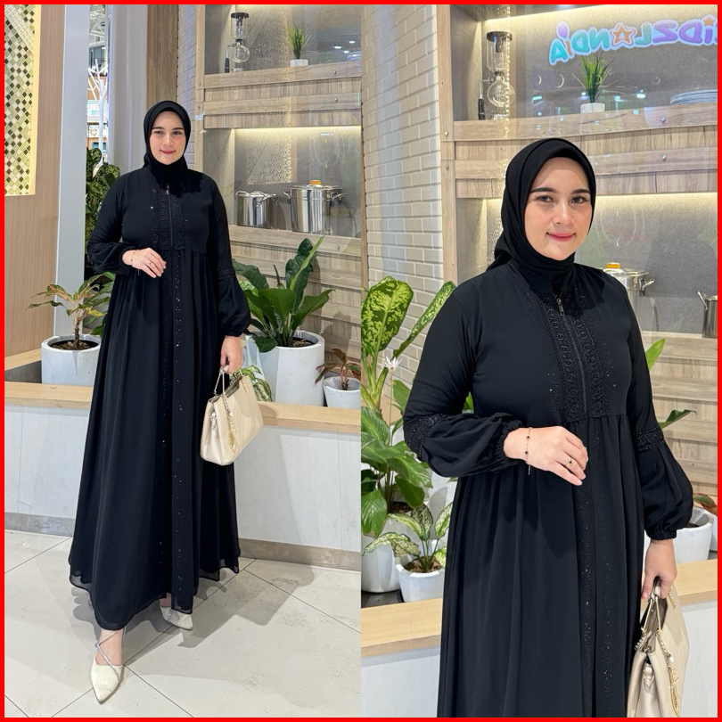 Gamis Abaya Wanita Hitam Turkey Busui Payet Maura Mewah