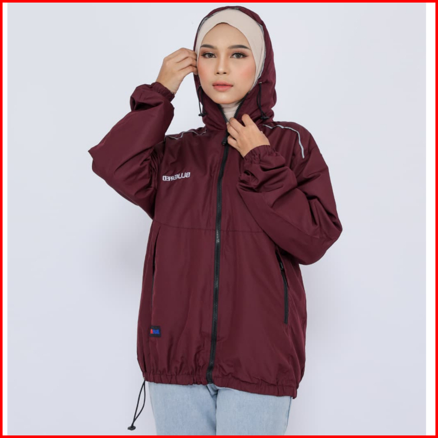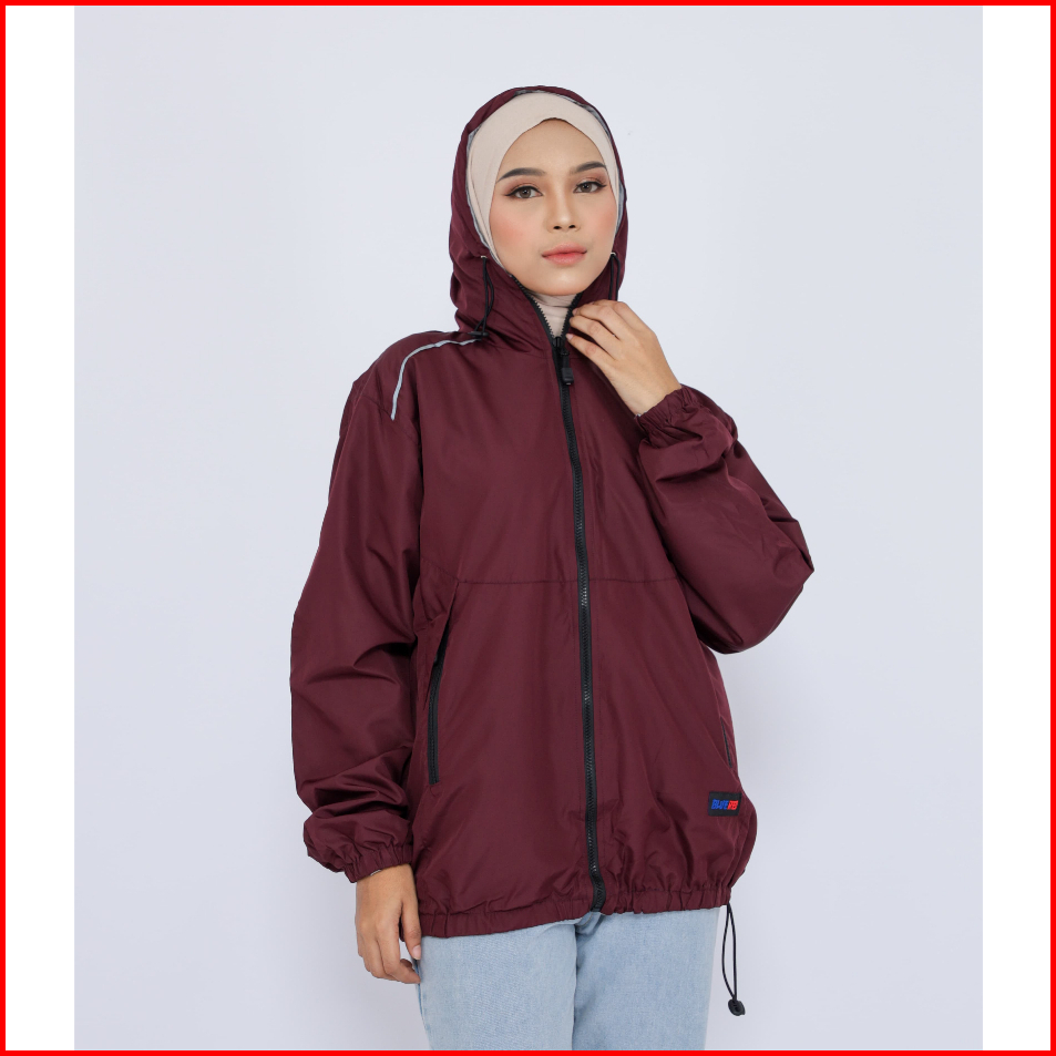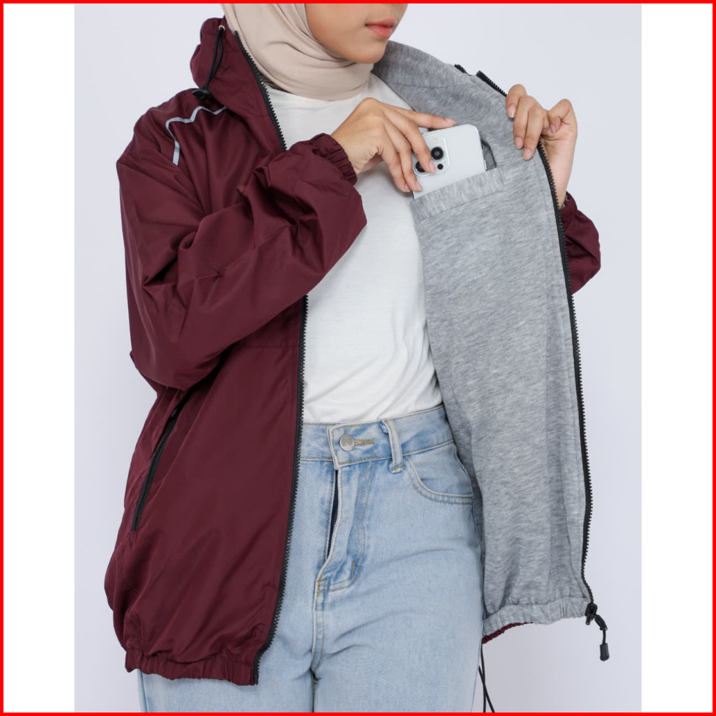 Salcloth Jaket Parasut Cewek Cowok Maroon Bolak Balik Jaket Motor Outfit Outdoor