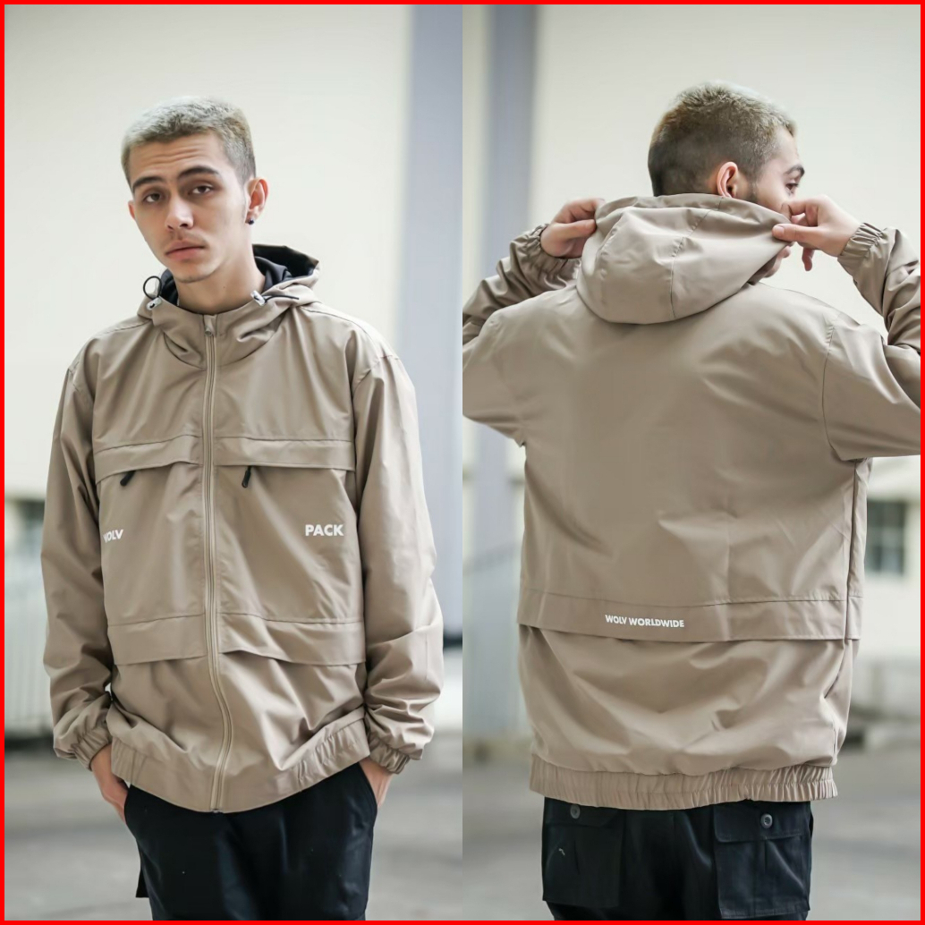 Jaket Casual Bassic Parasut Unisex Terbaru - Jacket Pria Waterproof Premium Distro Anti Air Zipper Wp