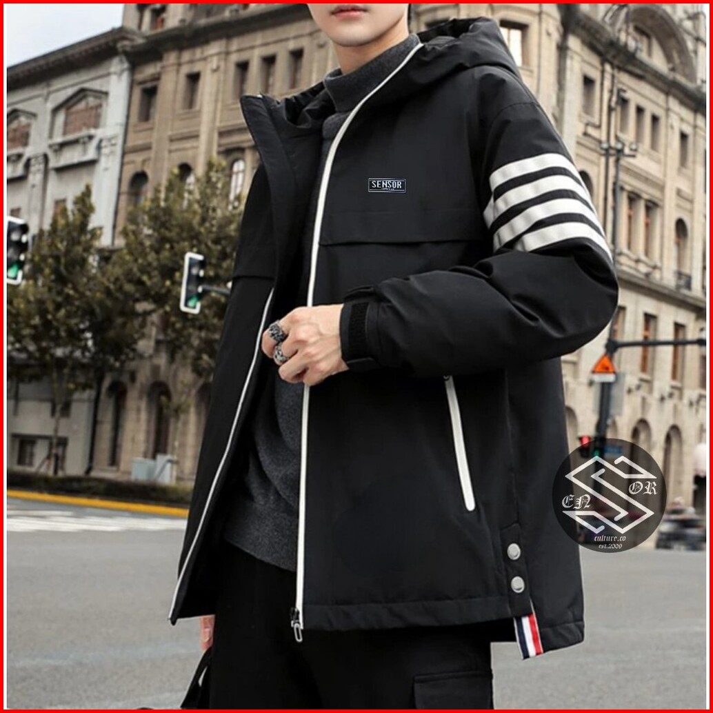 Dropstore Jaket Cowok Waterproof Bahan Taslan List Four Quality Original