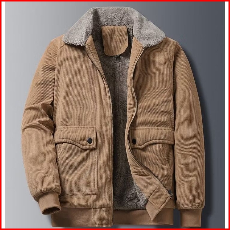 Jaket Corduroy Sherpa Bulu Pria Dan Wanita Unisex Warna Soft Furing Bulu Sherpa Casual Formal