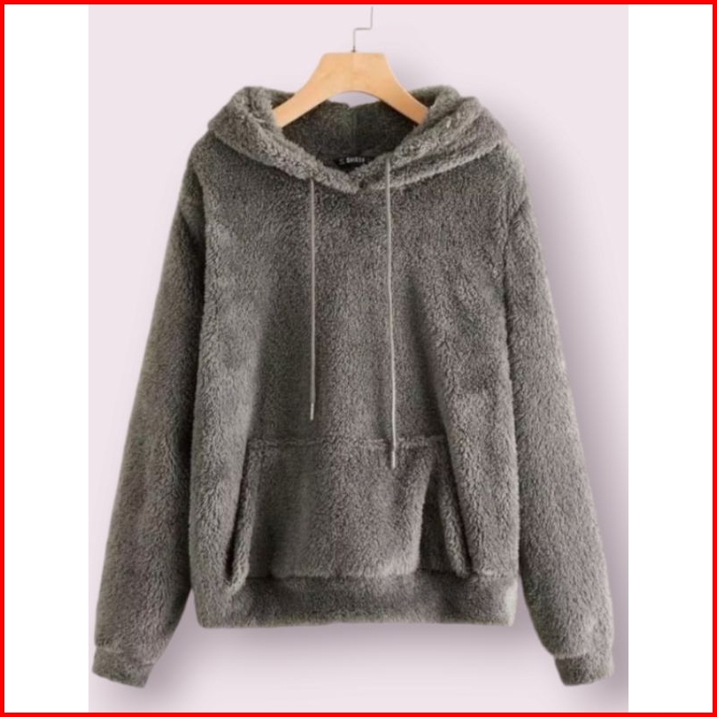 Sweater Jaket Hoodie Bulu Sherpa Bulu Domba Unisex Pria Wanita Terbaru