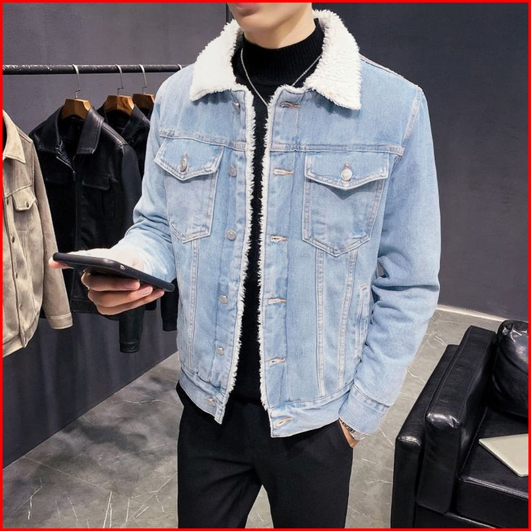 Jaket Jeans Denim Sherpa Jaket Jeans Pria Wanita Sherpa Denim - Jaket Jeans Sherpa Pria Jaket Bulu