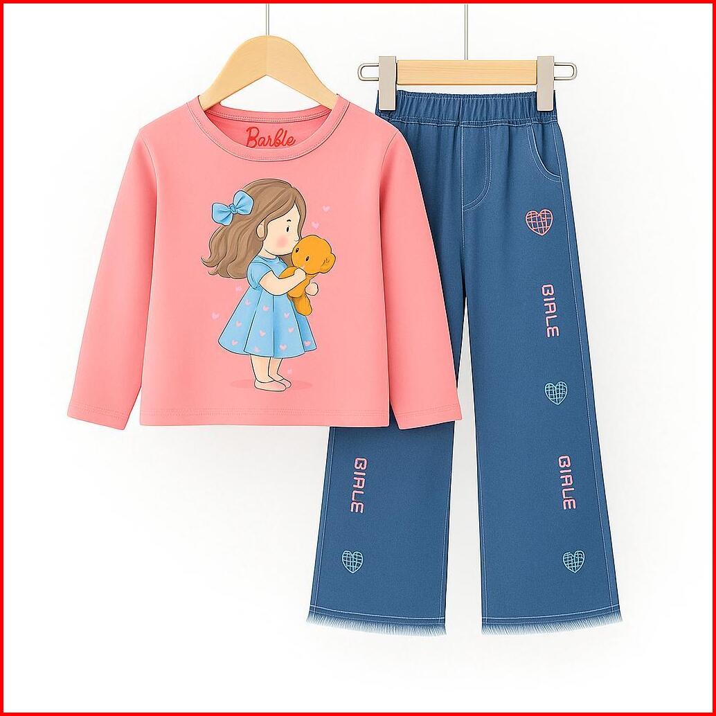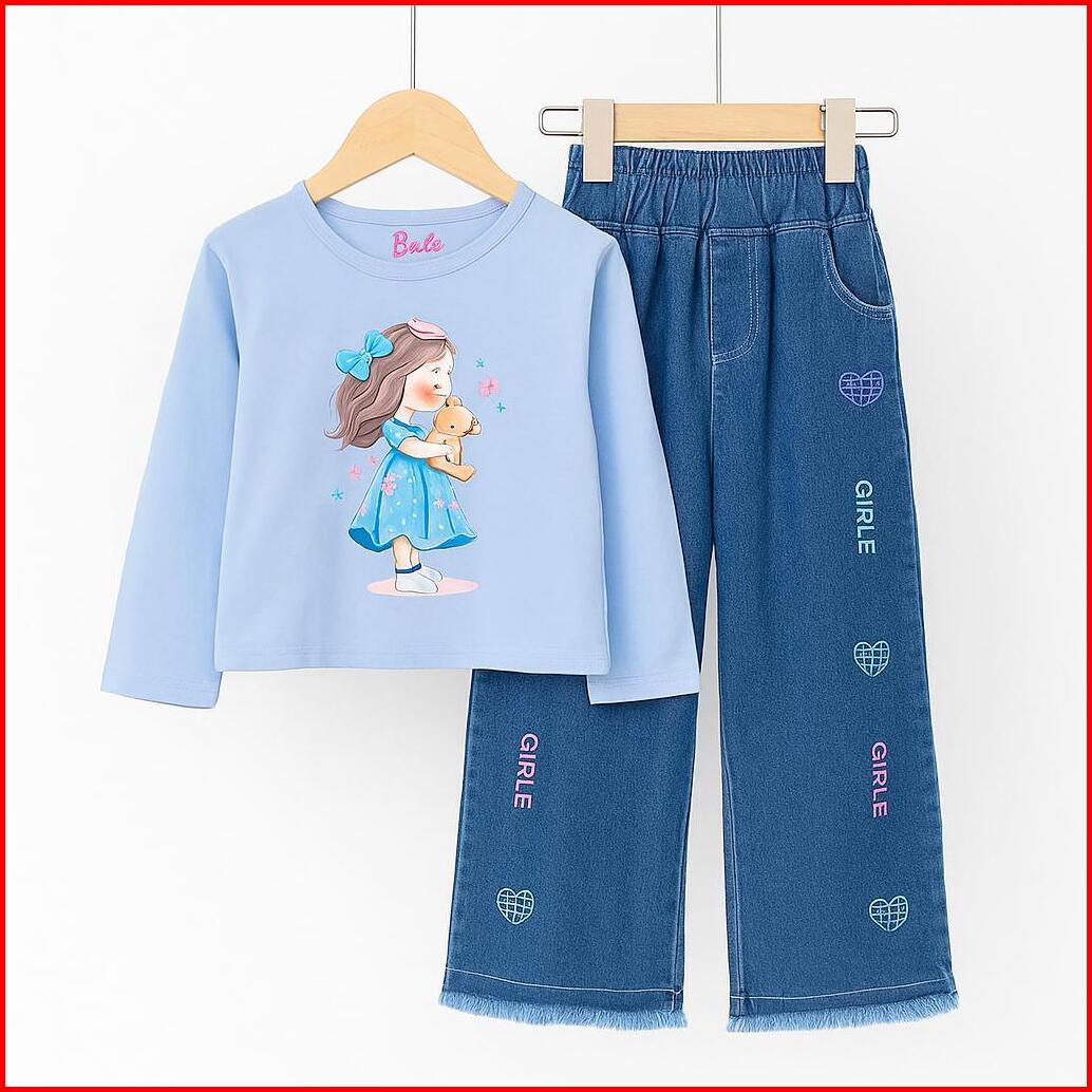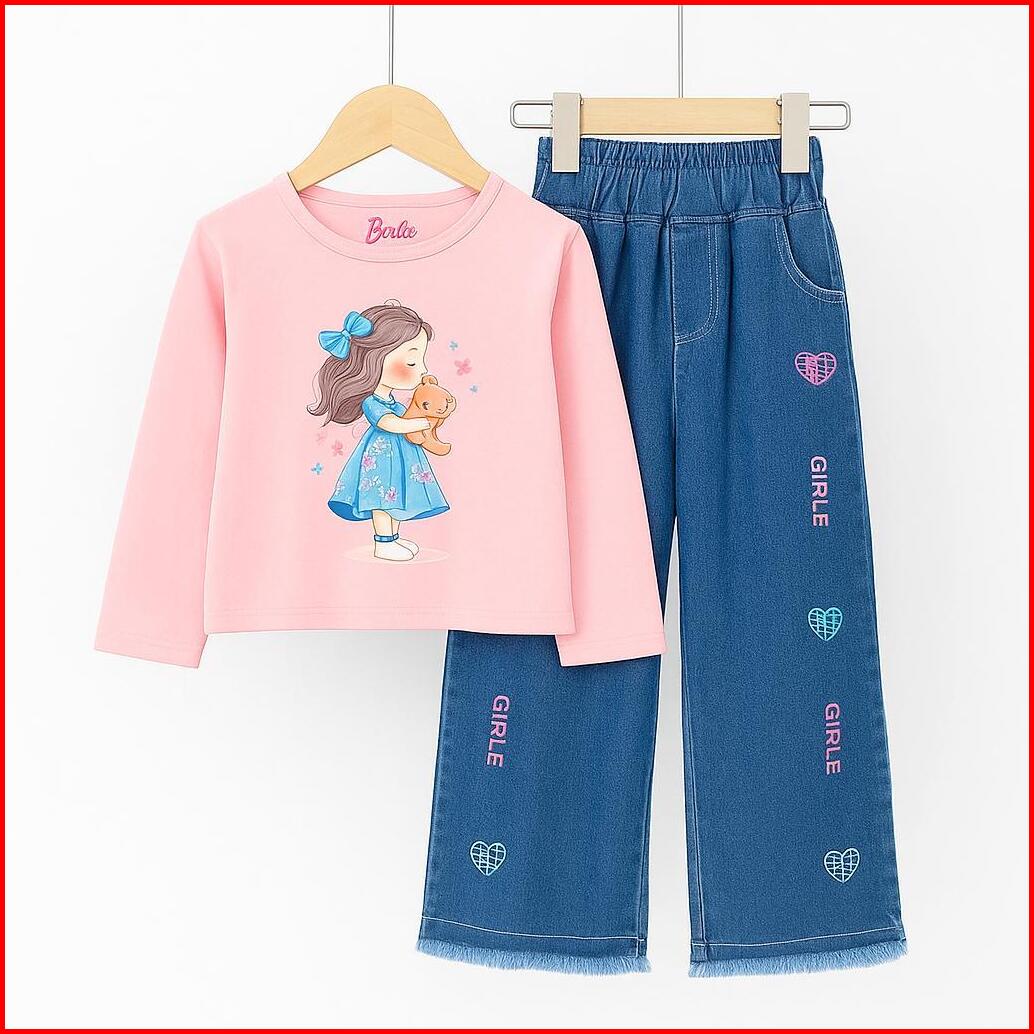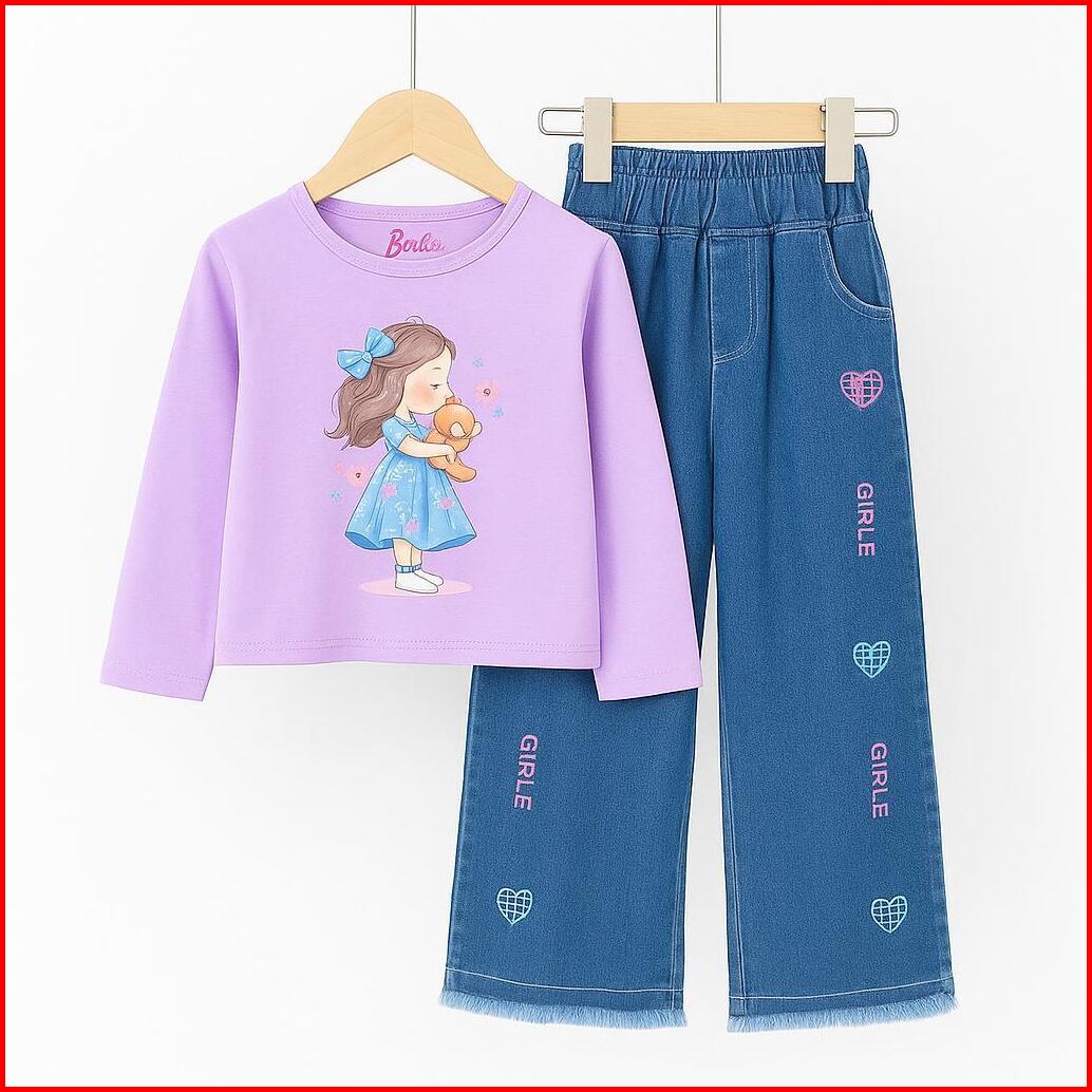 Setelan Anak Kaos Crop Dan Kulot Jeans Rawis Usia 2-12tahun Setelan Girlie Anak Perempuan