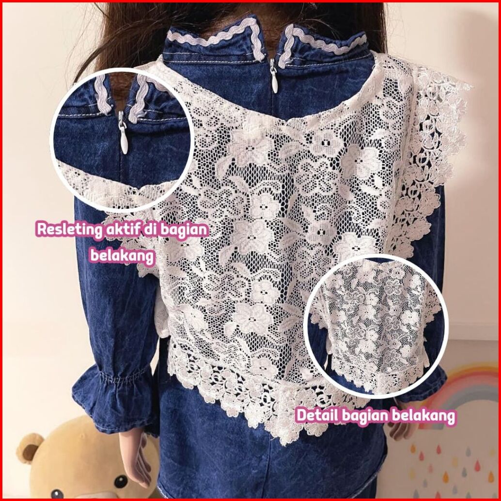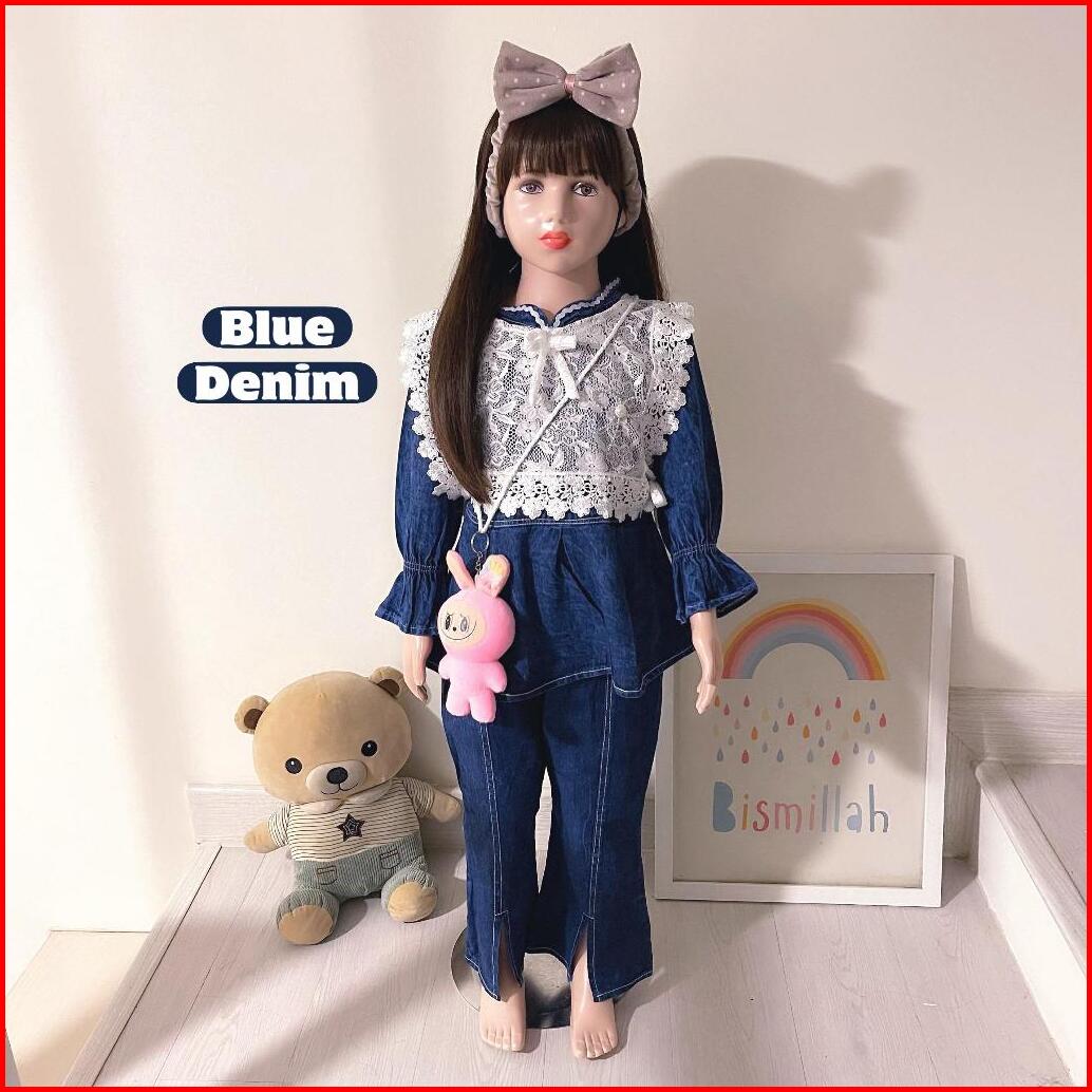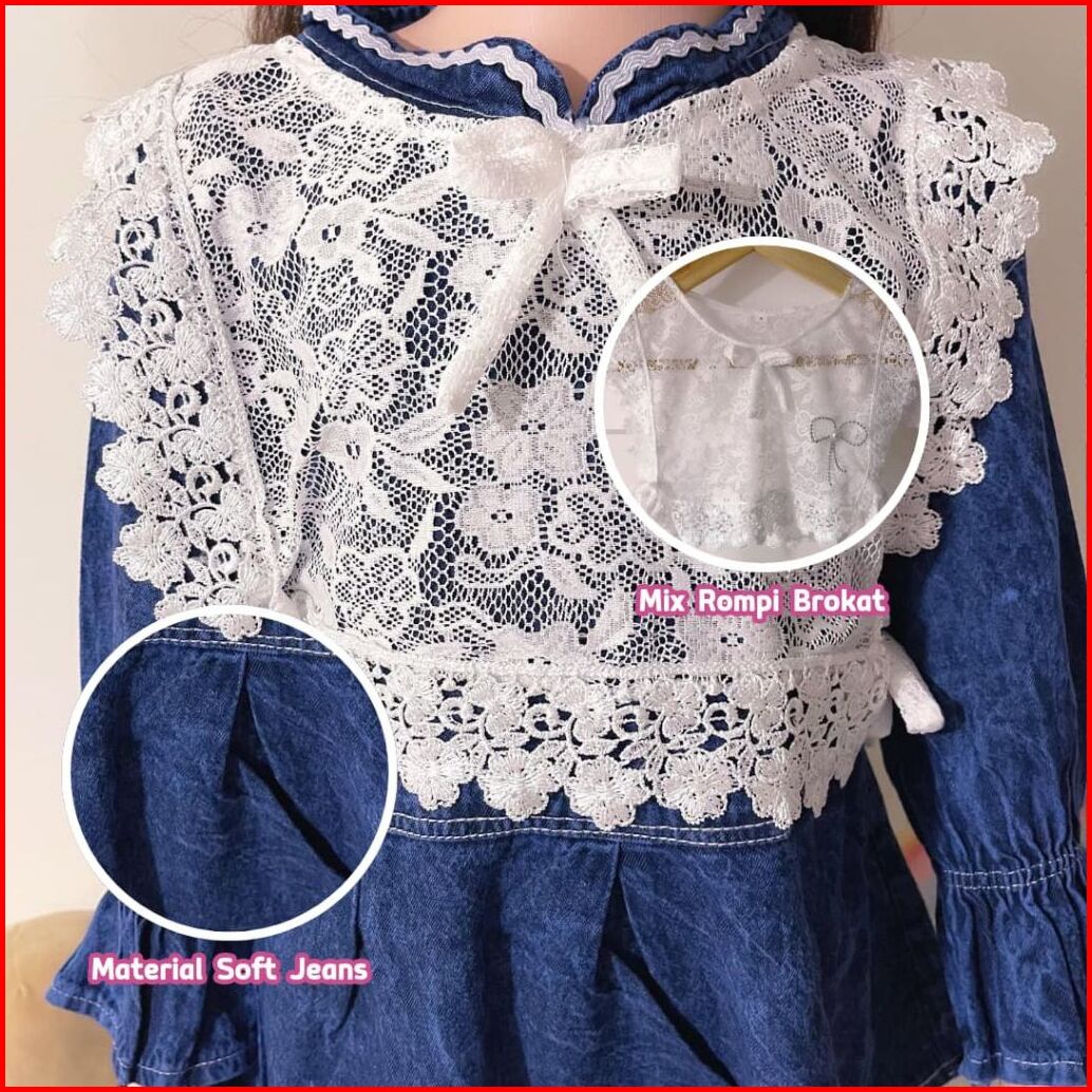 Setelan Jeans Anak Perempuan Import Mix Brokat Premium Usia 3-10 Tahun
