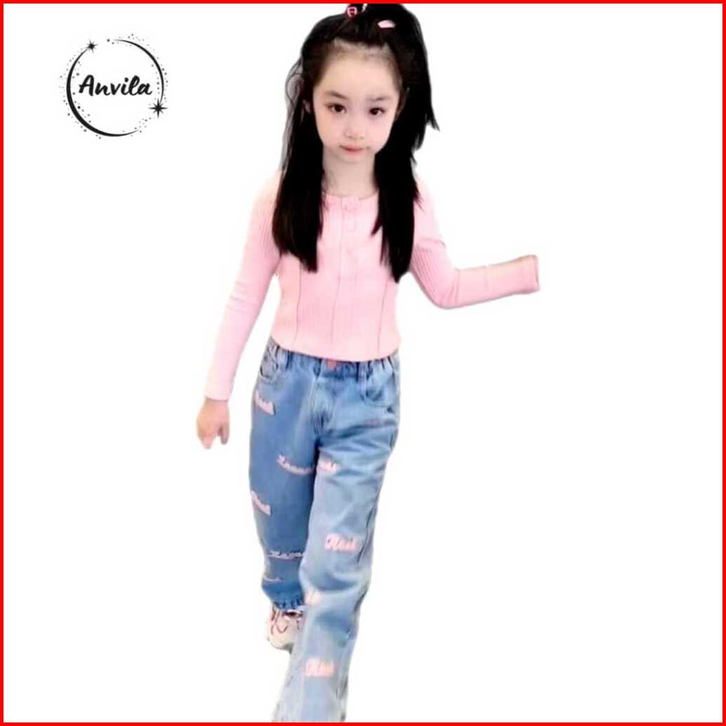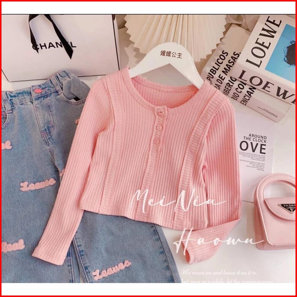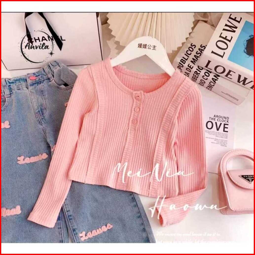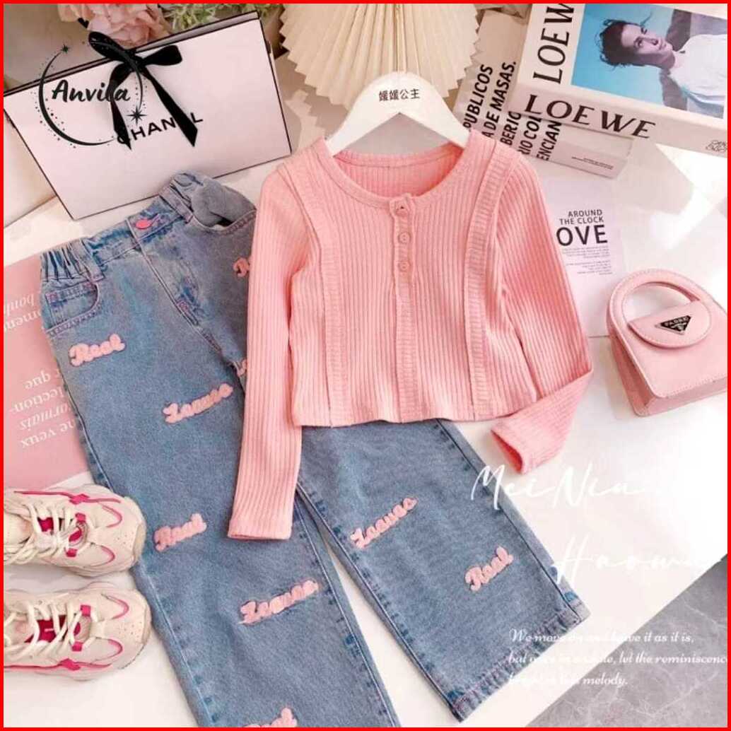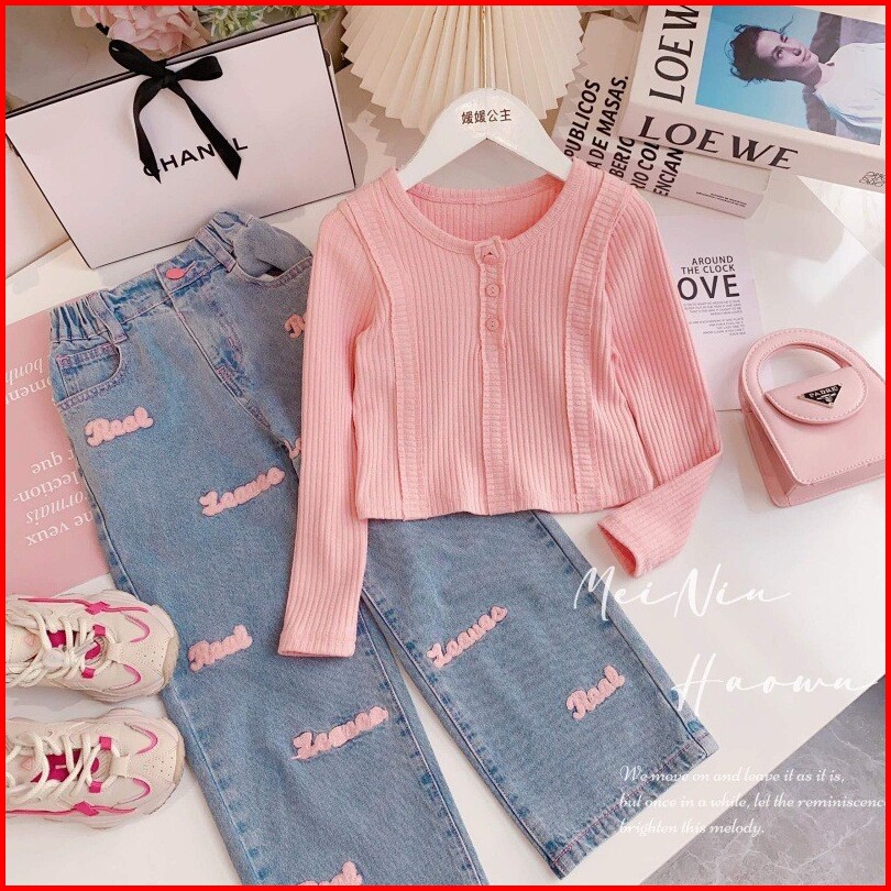 Setelan Anak Perempuan Import Jeans Cardigan Lengan Panjang Kancing Pinggang Karet Real Zeavea