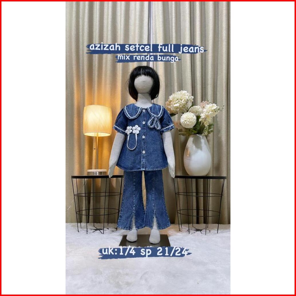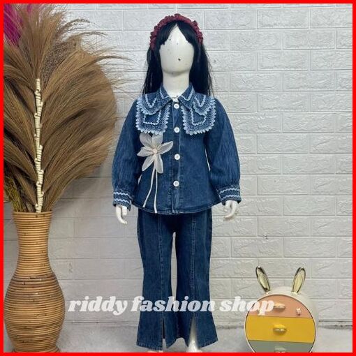 Setelan Jeans Laura Mix Renda Bunga Anak Perempuan Usia 3 - 10 Tahun Set Denim Full Jeans Raya - Setcel Denim Celana Jea