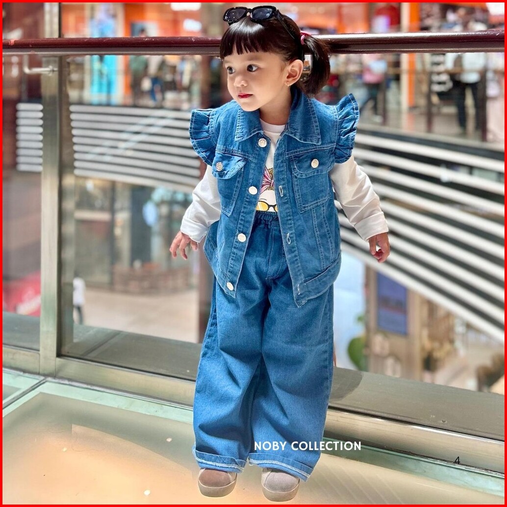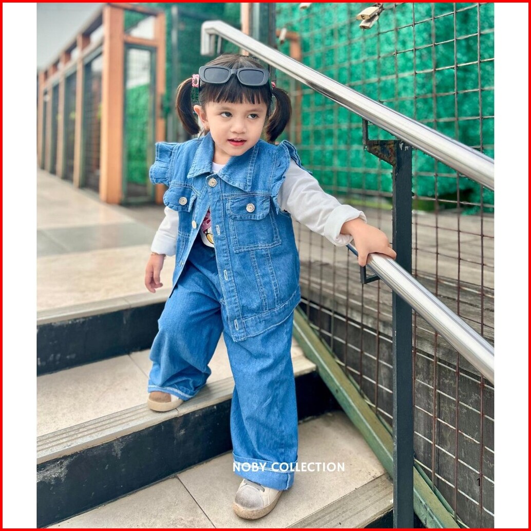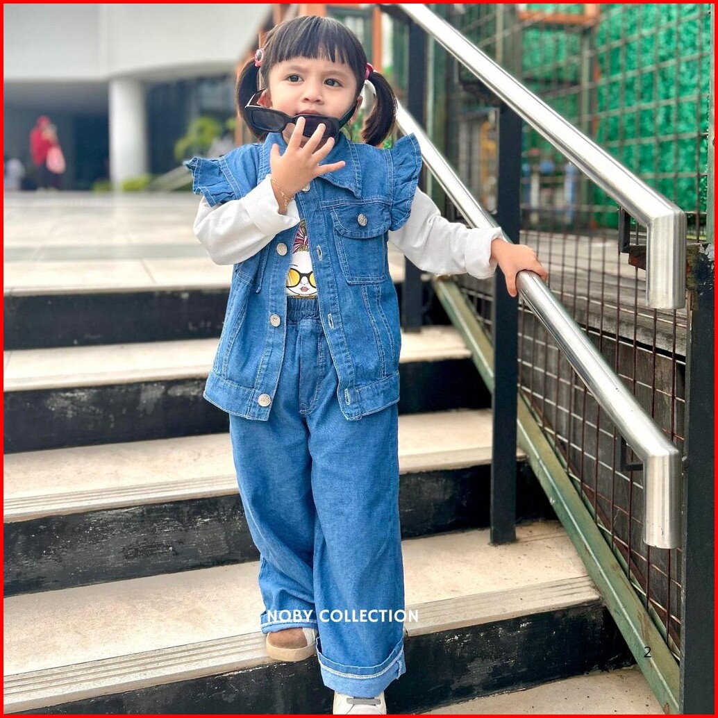 Setelan Liora Celana Rompi 3 In 1 Jeans Anak Perempuan Usia 3-13 Tahun Fashion Model Terbaru