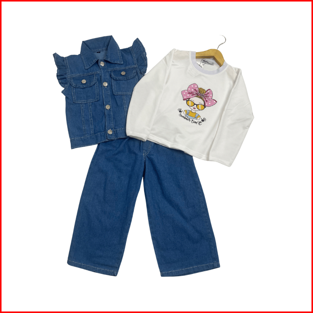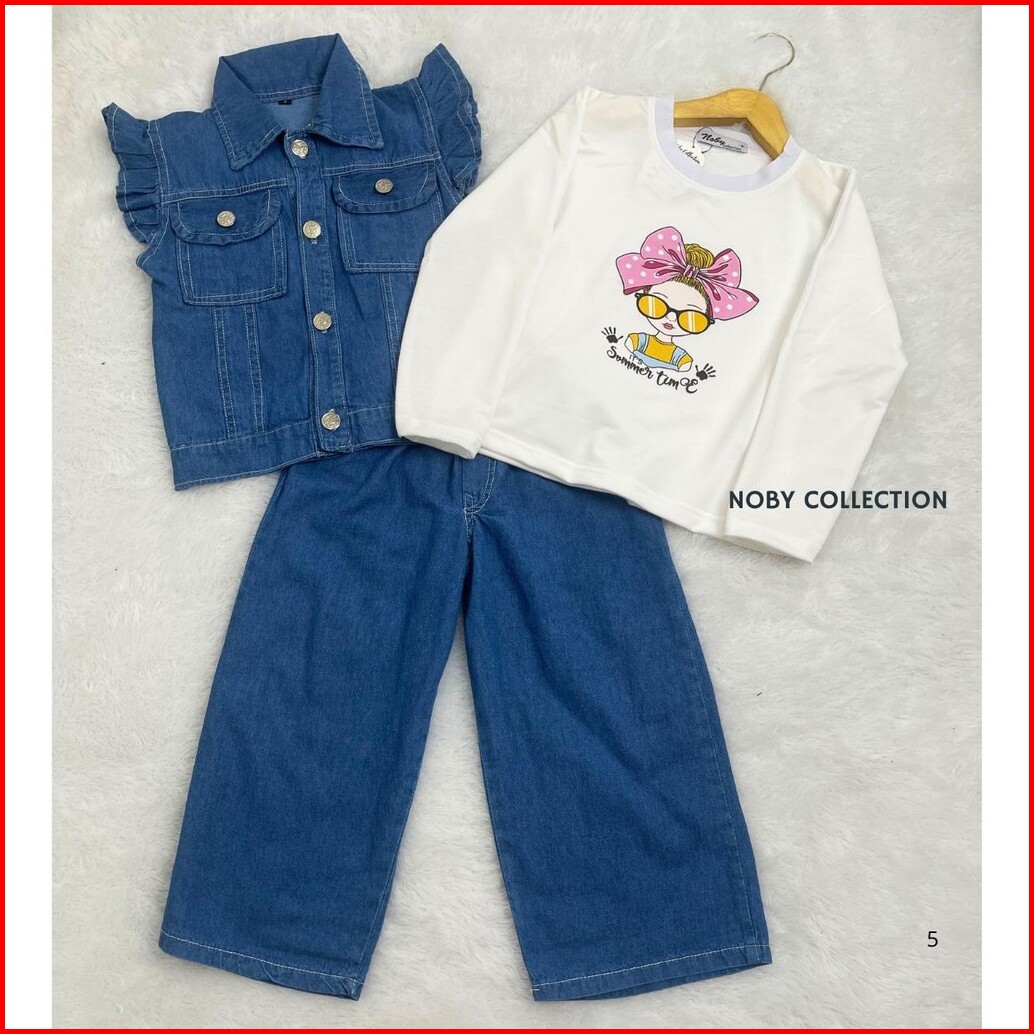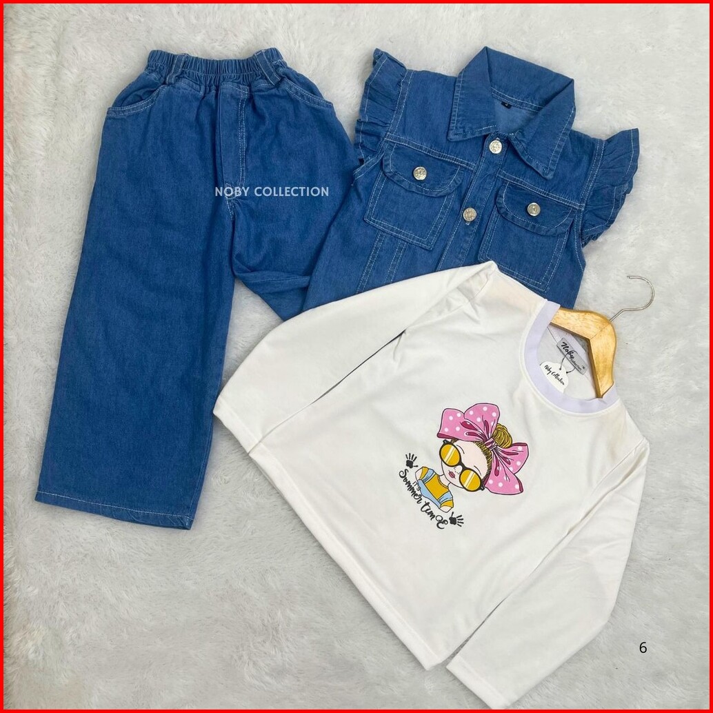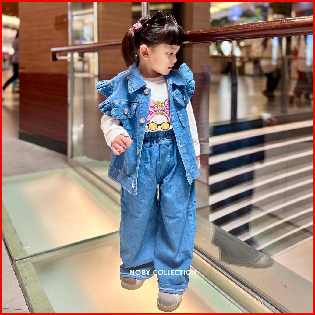 Setelan Liora Celana Rompi 3 In 1 Jeans Anak Perempuan Usia 3-13 Tahun Fashion Model Terbaru