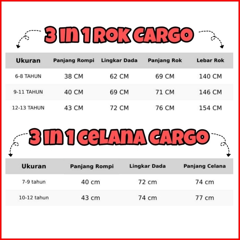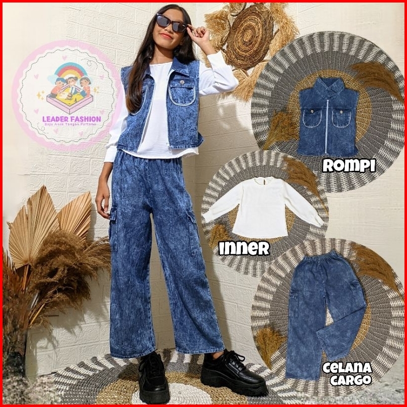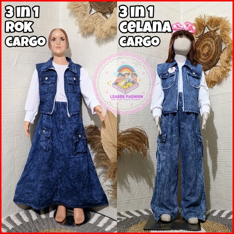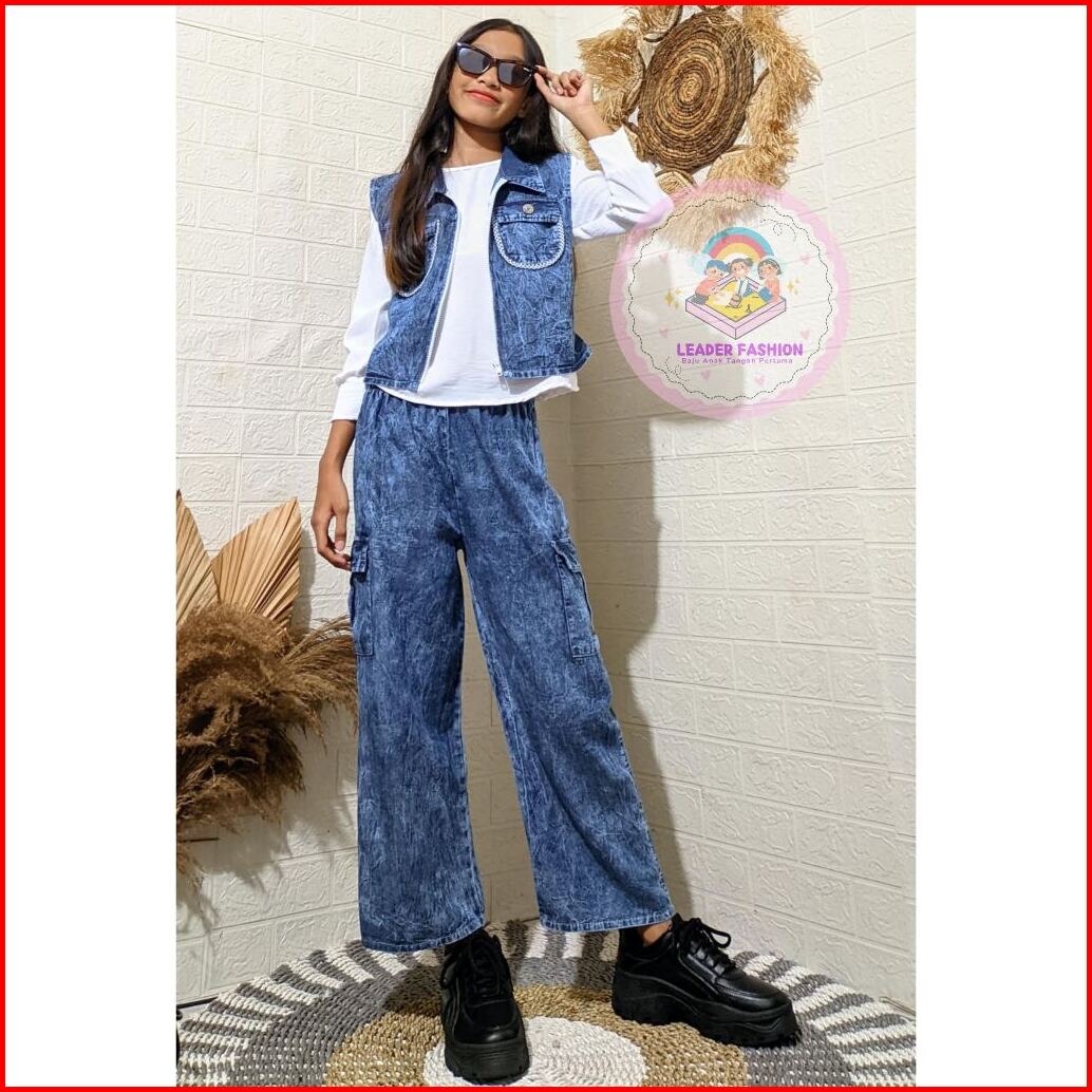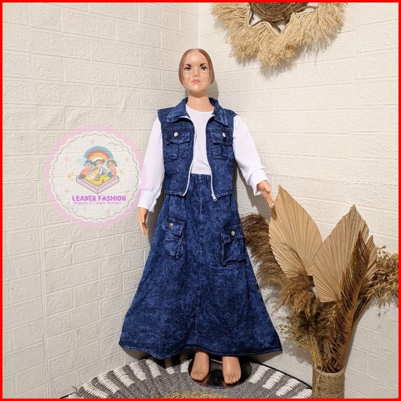 Setelan Rok Celana Cargo Rompi 3 In 1 Jeans Mix Crinkle Anak Perempuan Usia 6-13 Tahun Terlaris Terbaru