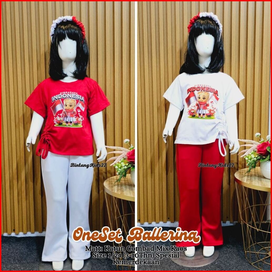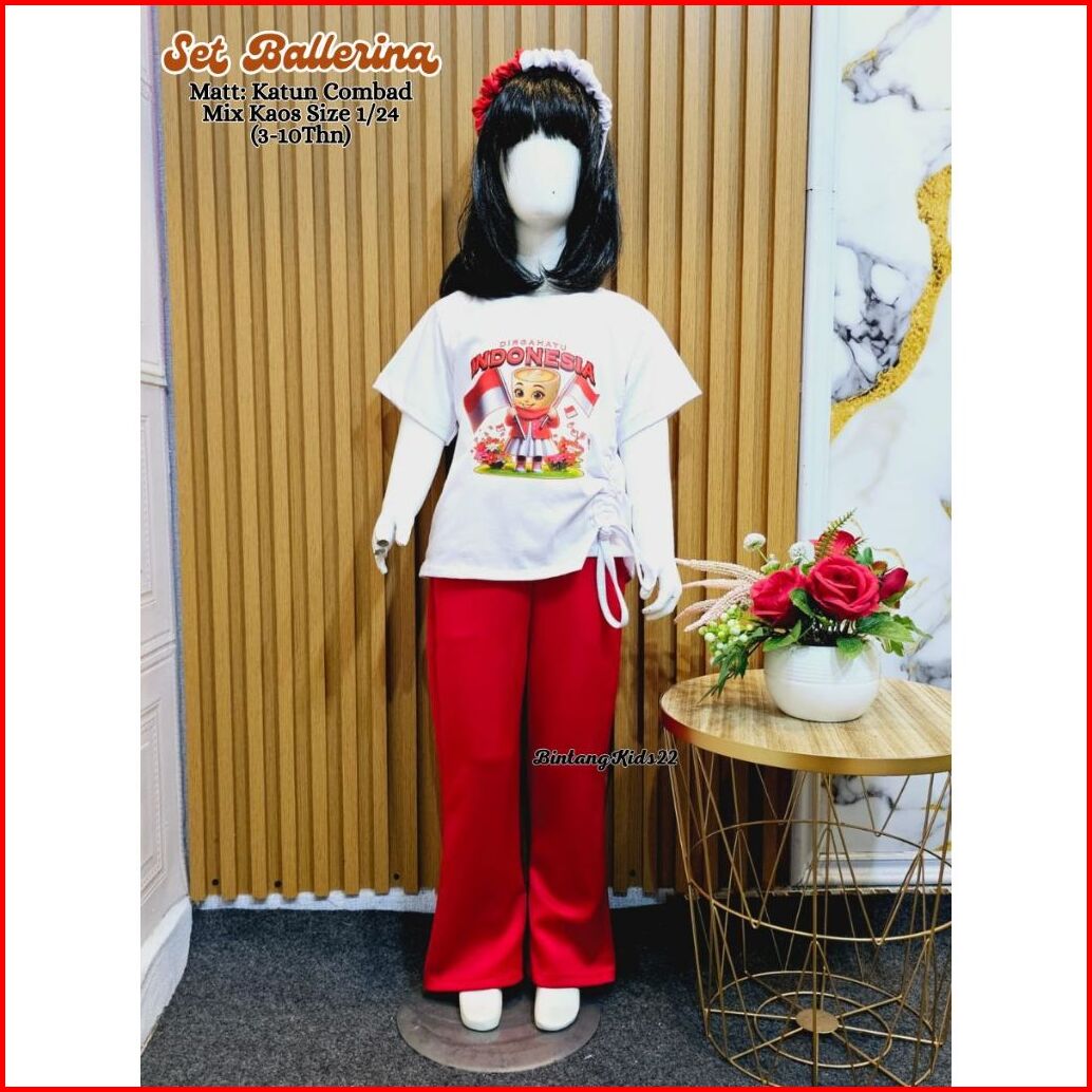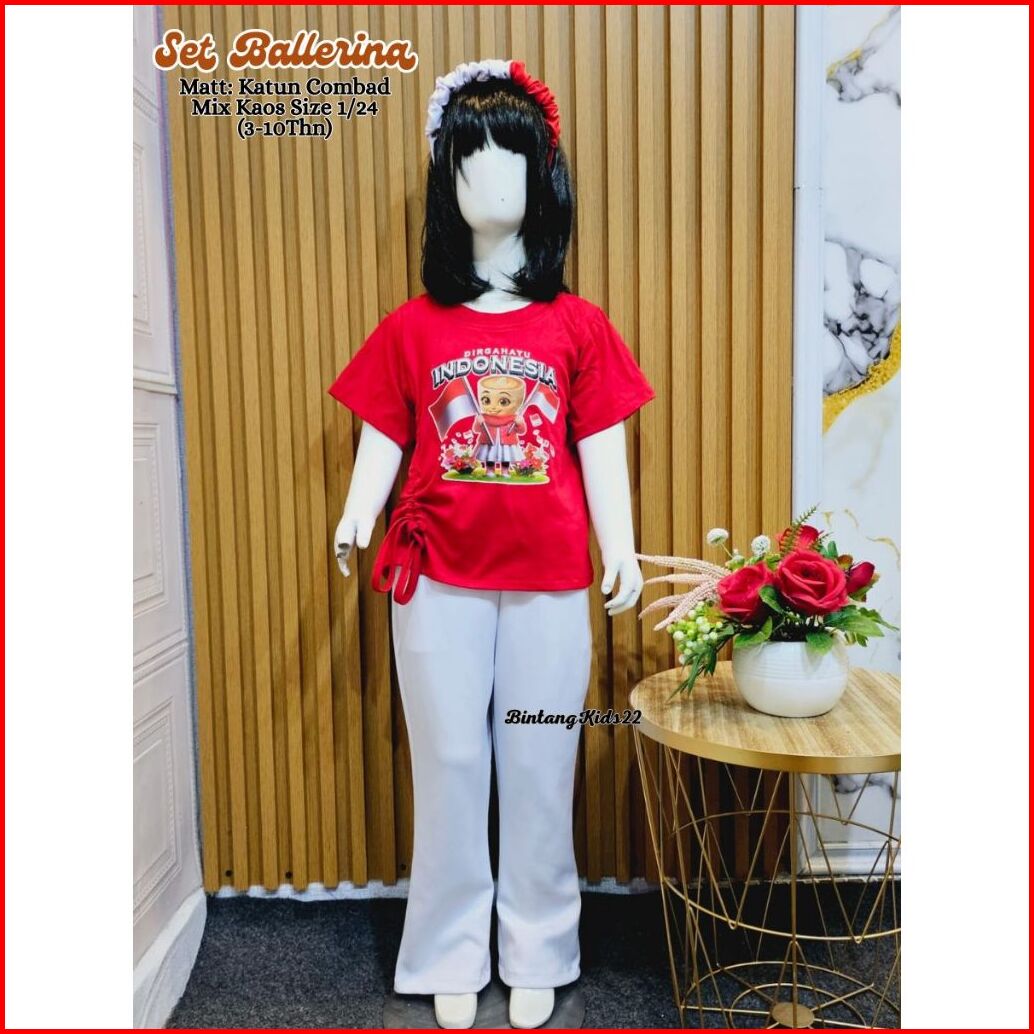 Setelan Spesial Dirgahayu Ballerina Usia 3-10 Tahun Setelan Anak Bahan Kaos Mix Katun Combad Premium Sablon Motif Setela