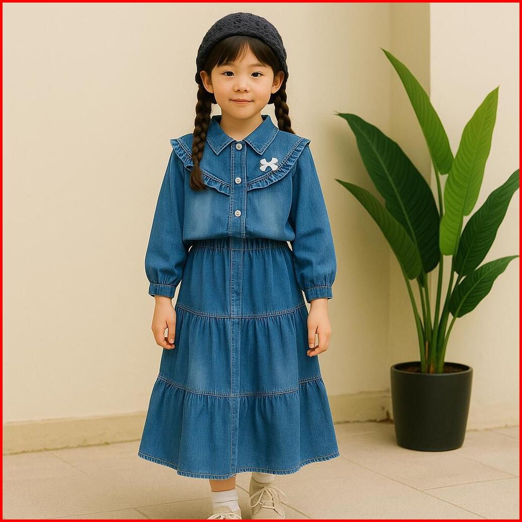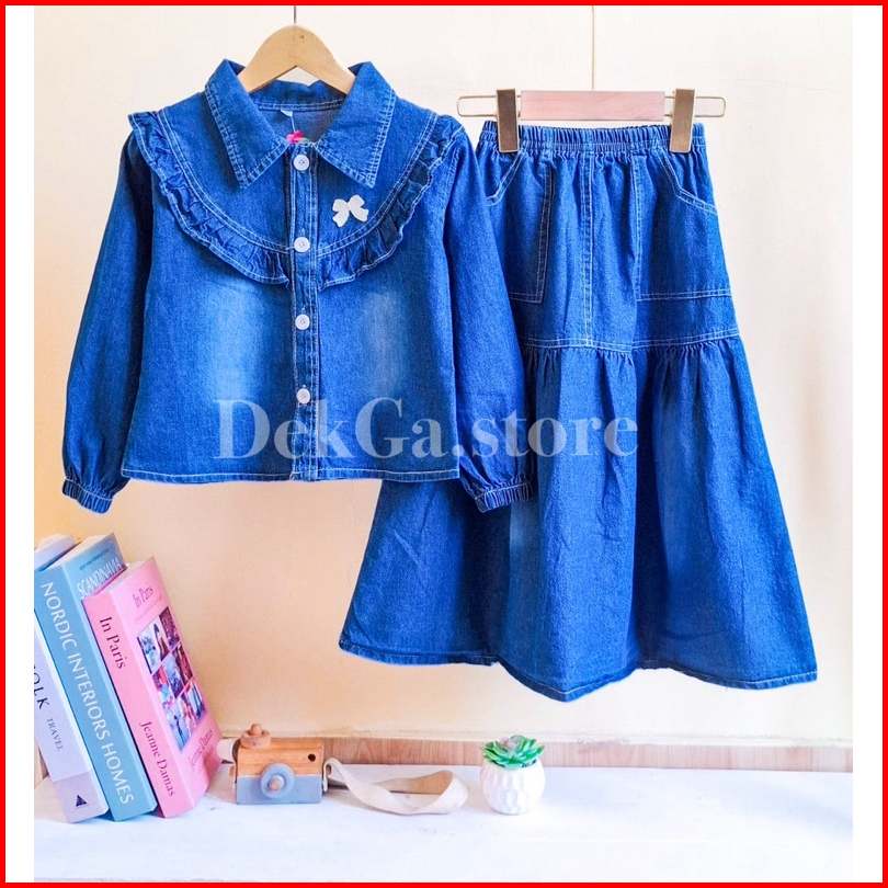 Alesha Setelan Rok Jeans Anak Perempuan Baju Muslim Anak 3-10tahun