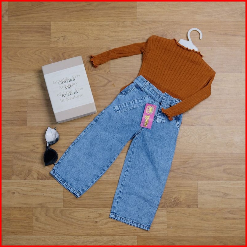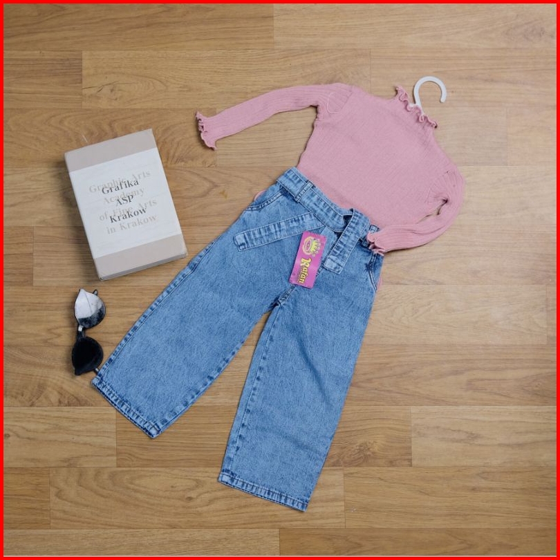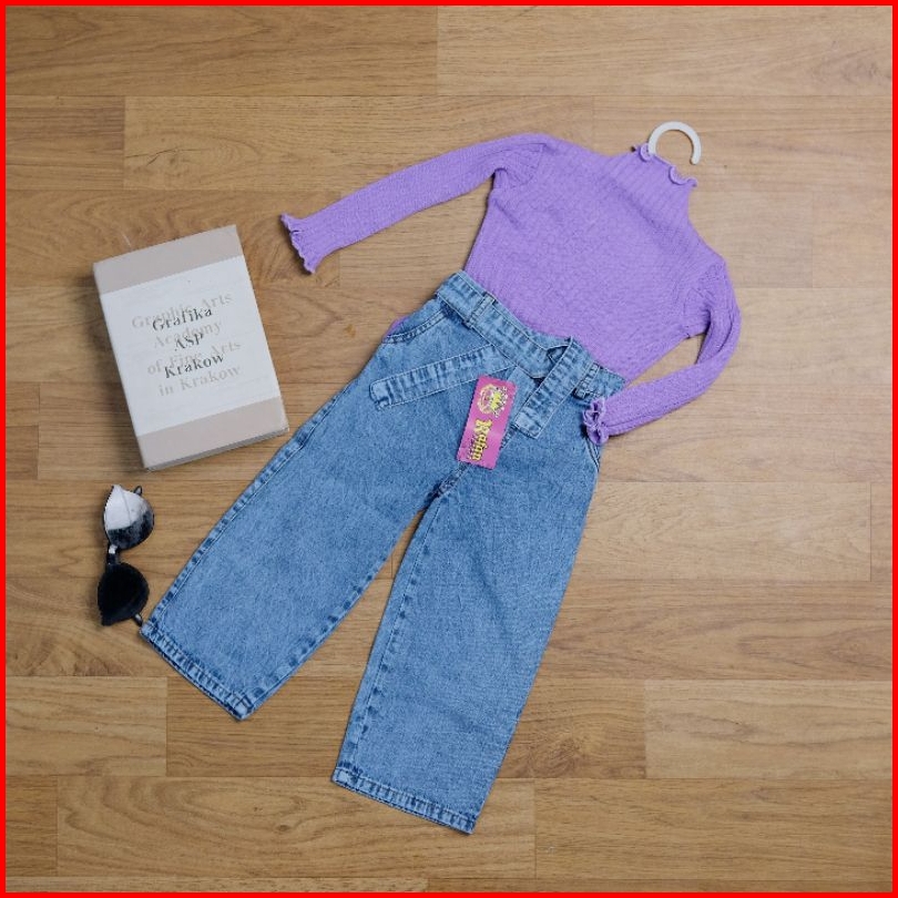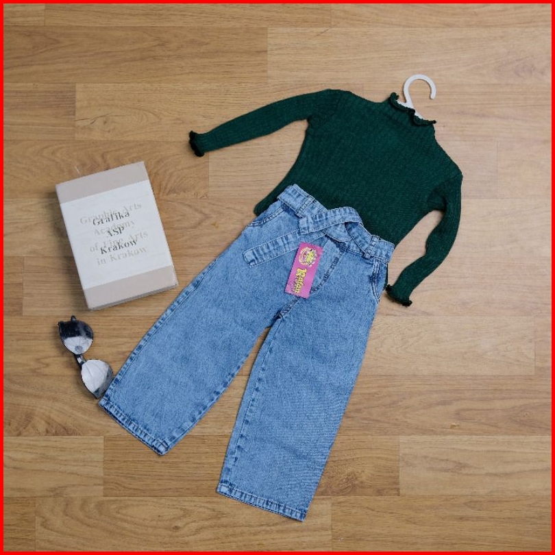 One Set Celana Kulot Jeans Anak Perempuan Dan Baju Rajut Size 1-6 Tahun