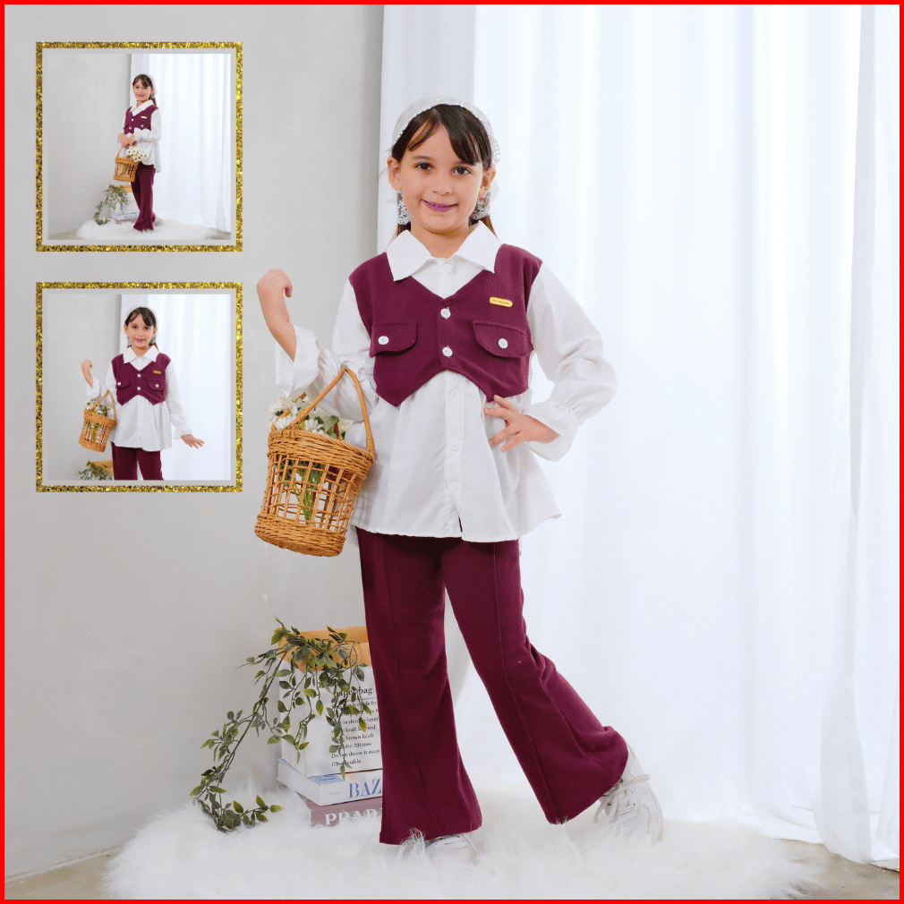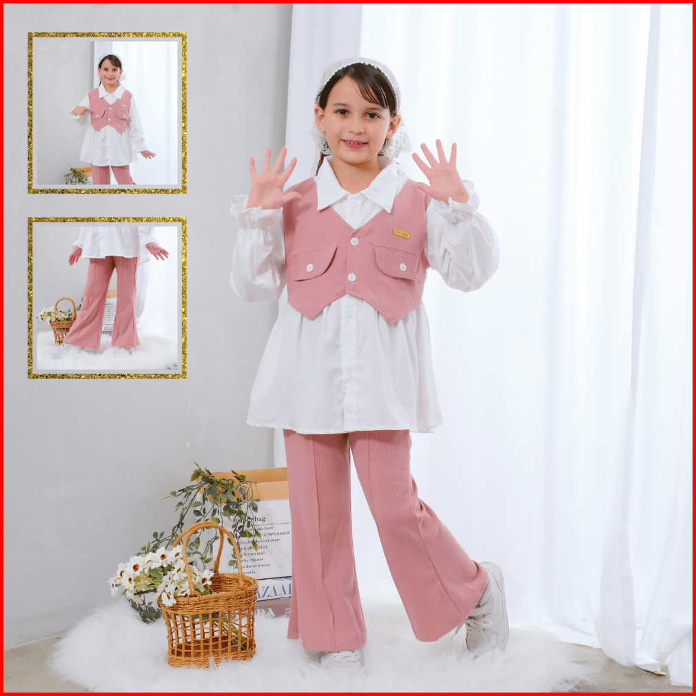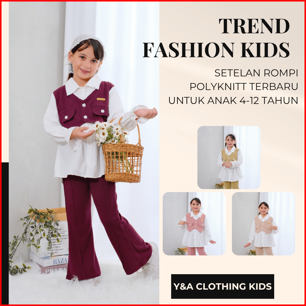1 Setelan Baju Anak Perempuan 3-14 Tahun Baju Knitt Celana Cutbray Baju Anak Perempuan