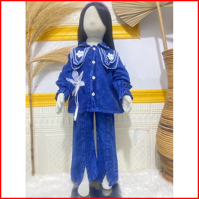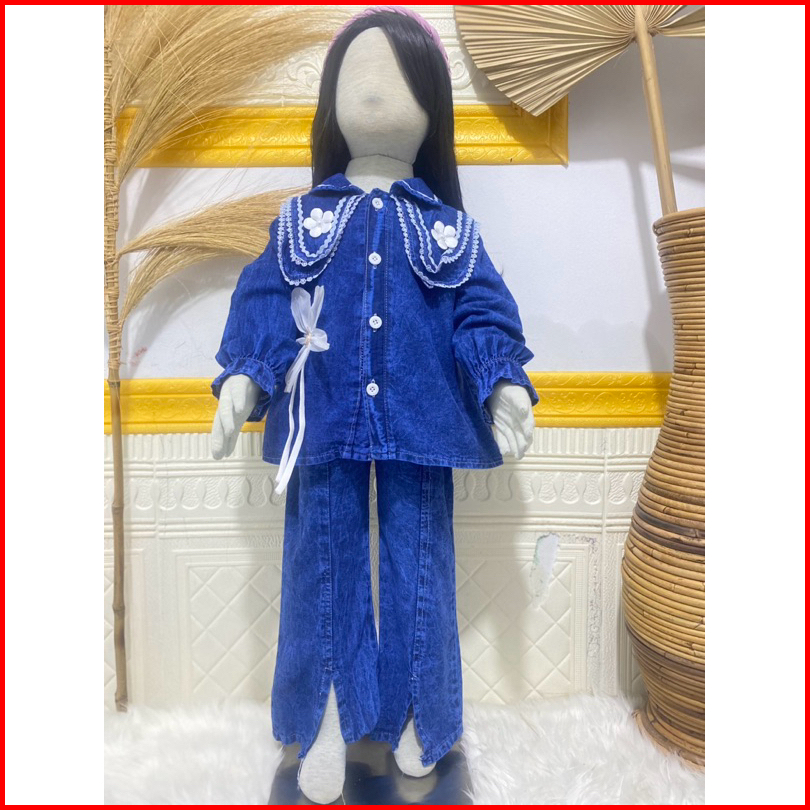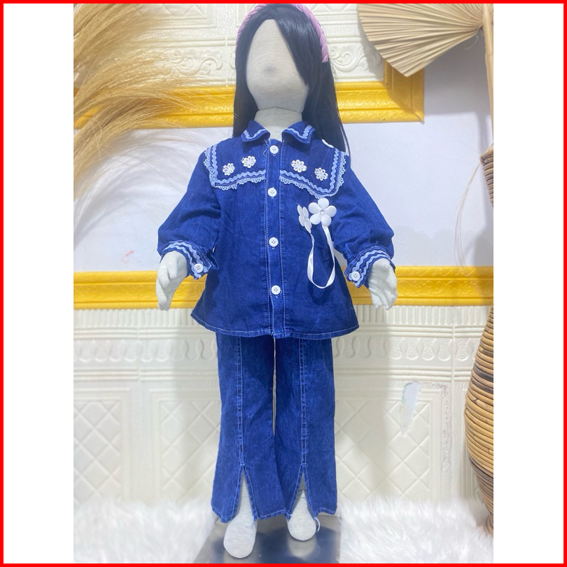 Setelan Full Jeans Lengan Panjang Celana Jeans Cutbray Anak Perempuan Usai 3 Tahun - 12 Tahun Set Jeans Cutbray Anak Per