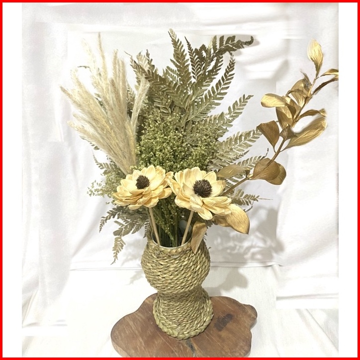 1set Bunga Kering Dan Vas Daun Palem Kering Wilderiy Daun Pakis