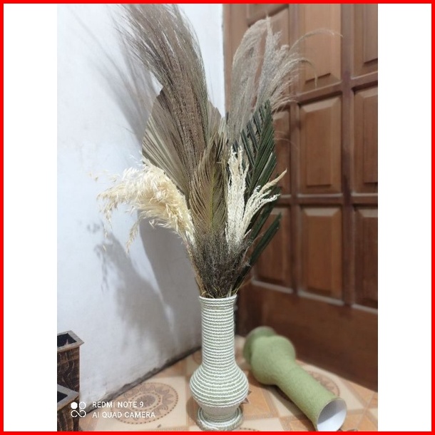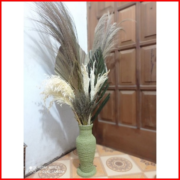 Paket Lengkap Daun Kering Vas T40cm Daun Rustic Cocok Ditaruh Dilantai