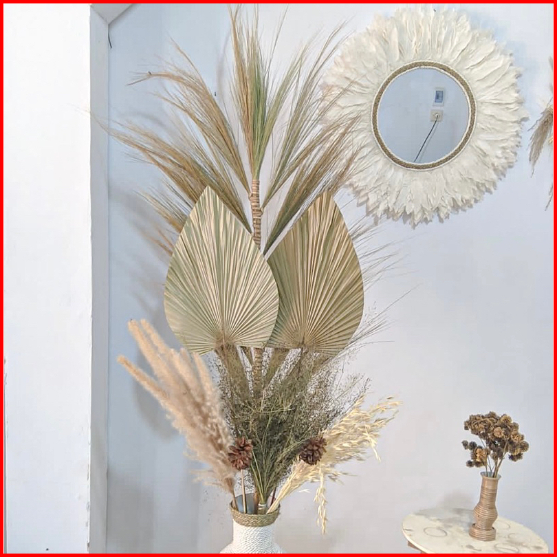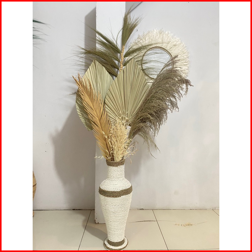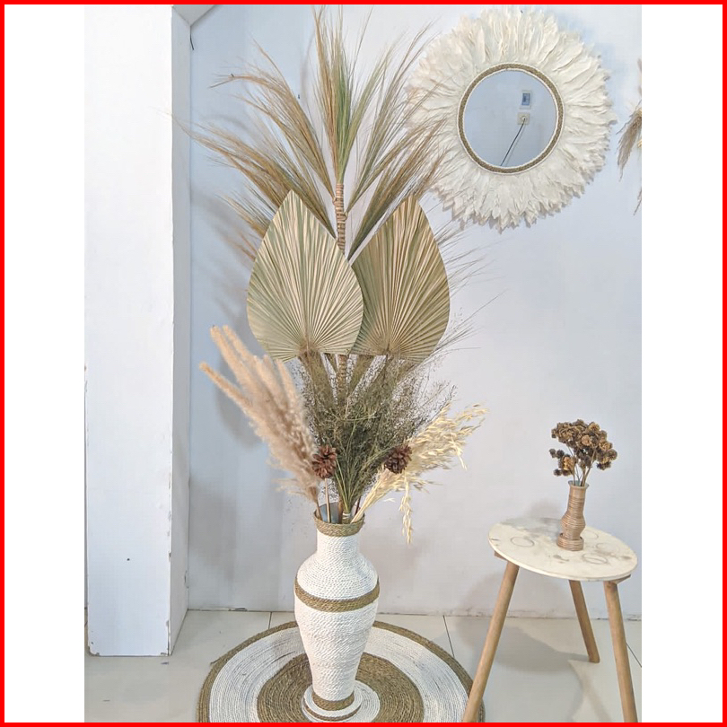 Paket Lengkap Termurah Vas Guci 50 Cm Bouquet Daun Palem Kering Pampas Rayung Dried Flower