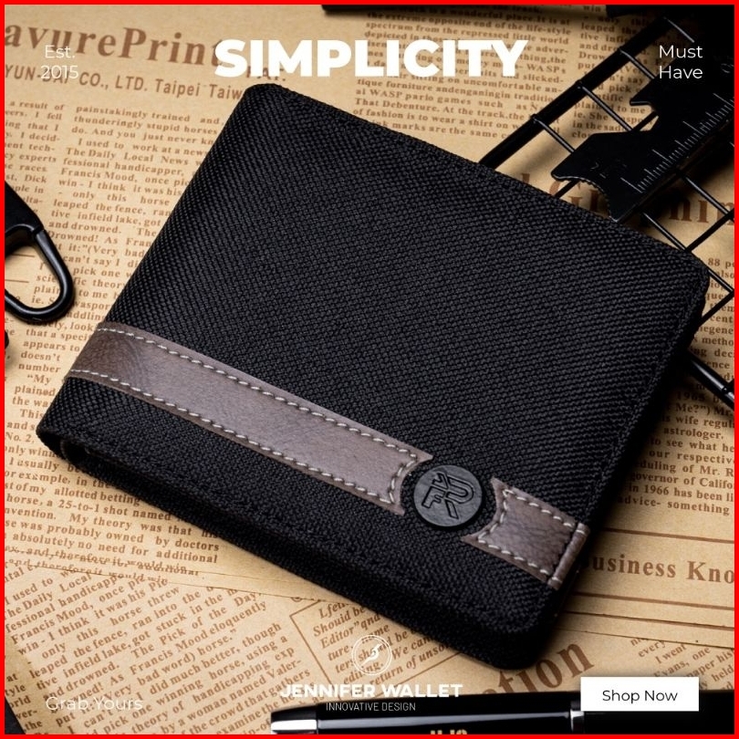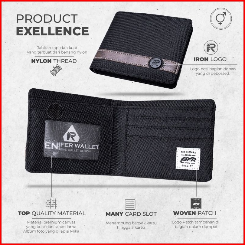 Jfr Dompet Pria Bahan Canvas Kombinasi Kulit Jshop01 Hitam