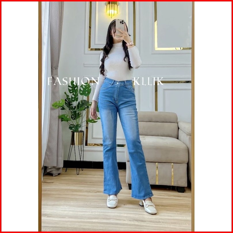 Highwaist Cutbray Jeans Wisker Spray Wanita Fashion Terbaru Celana Korean Style Nyaman Kekinian