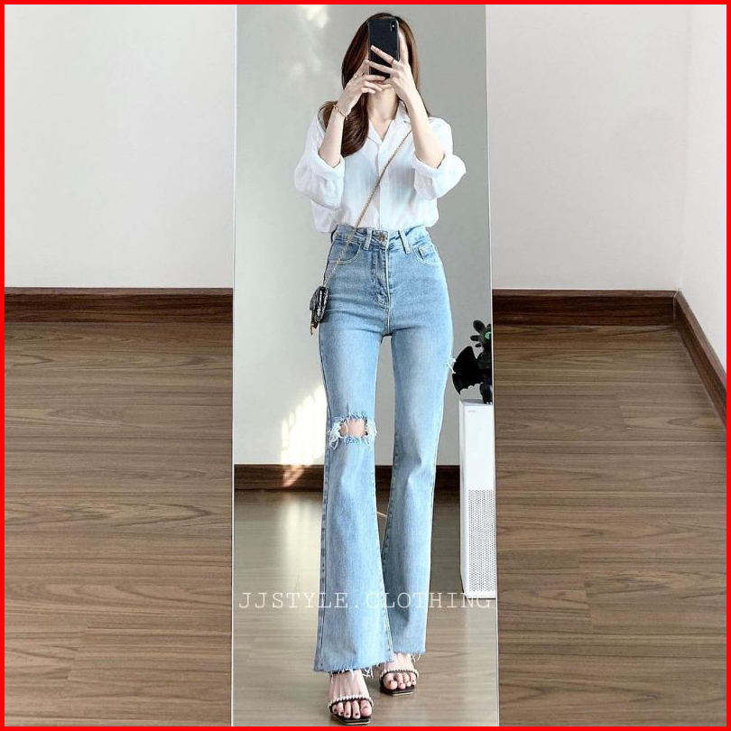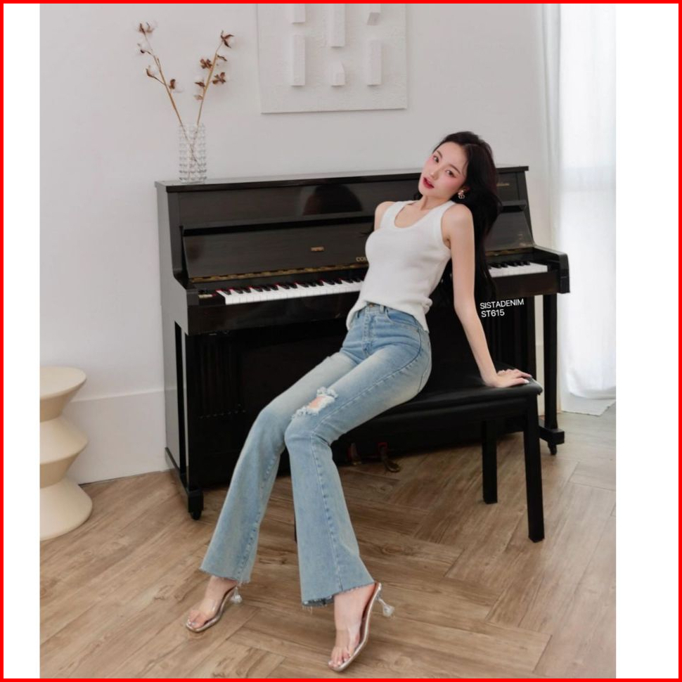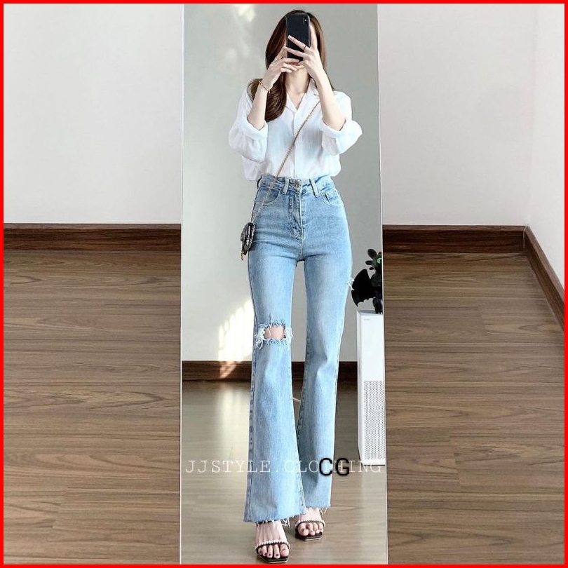Premium Highwaist Jeans Cutbray Ripped Celana Jeans Cutbray Sobek Streat