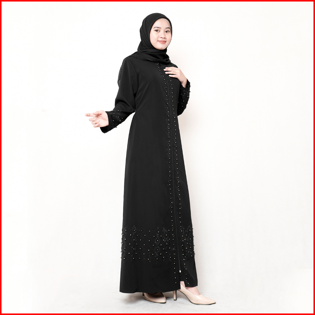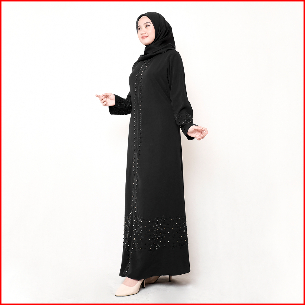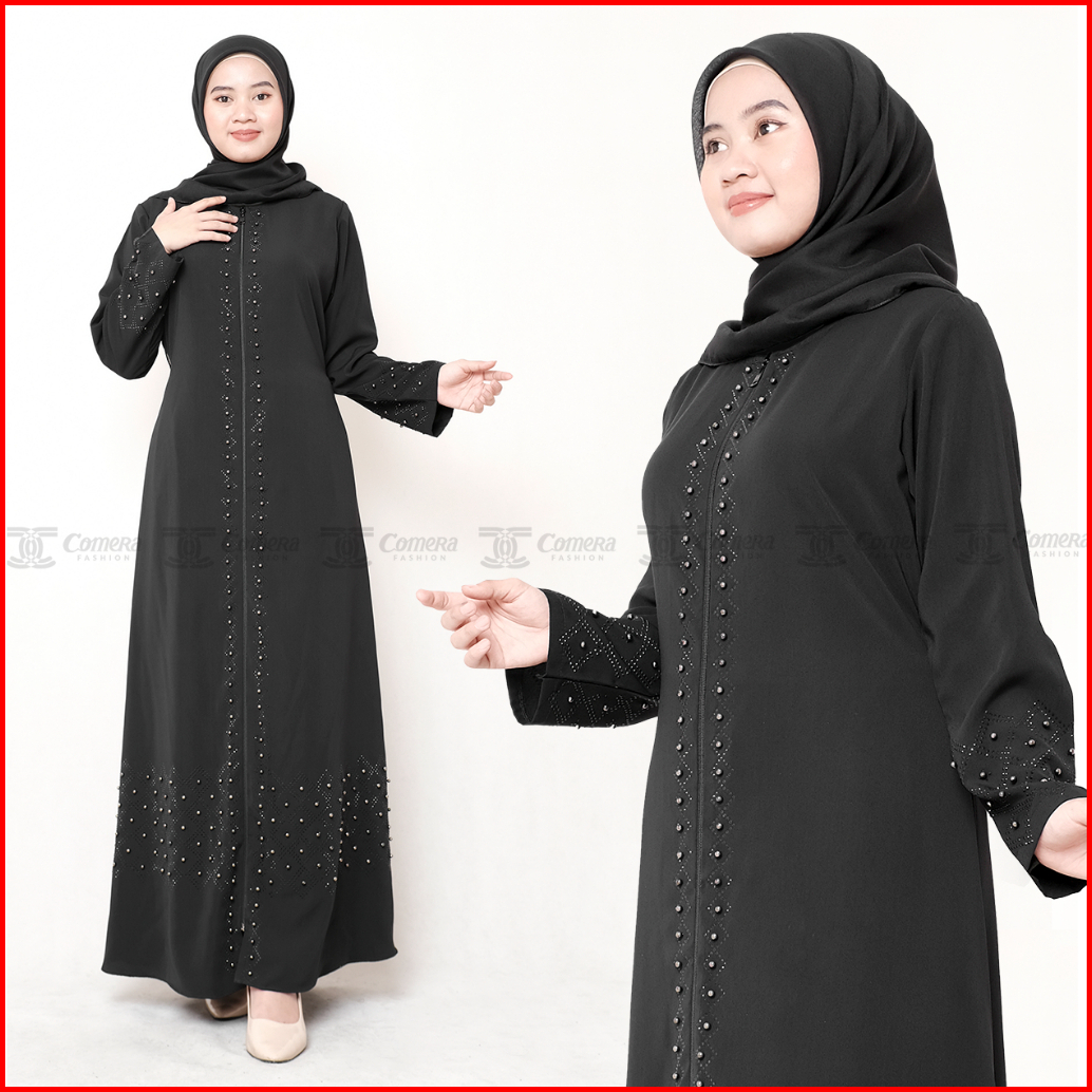 Comera - Abaya Hitam Turkey Gamis Muslim Wanita Remaja Elegan Wolfis Payet Mutiara Mewah Noura 500