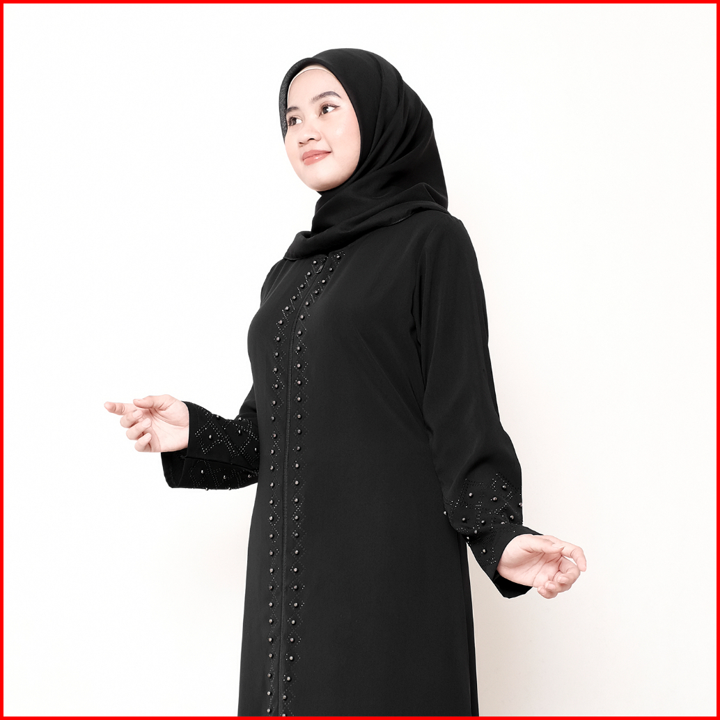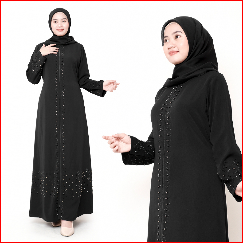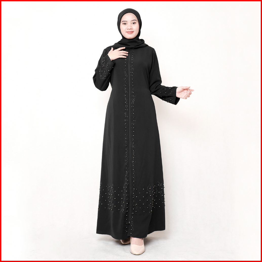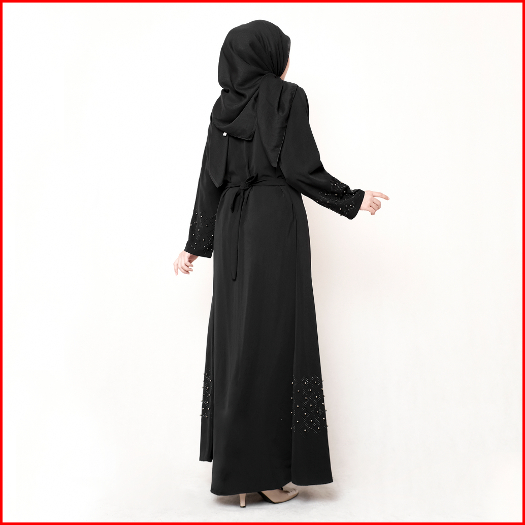 Comera - Abaya Hitam Turkey Gamis Muslim Wanita Remaja Elegan Wolfis Payet Mutiara Mewah Noura 500