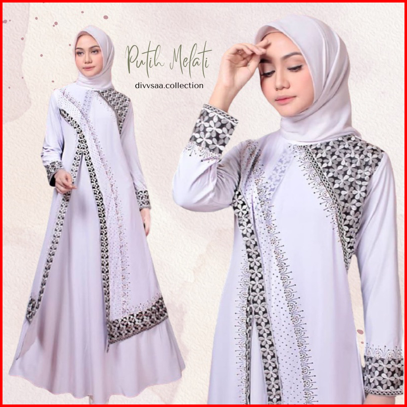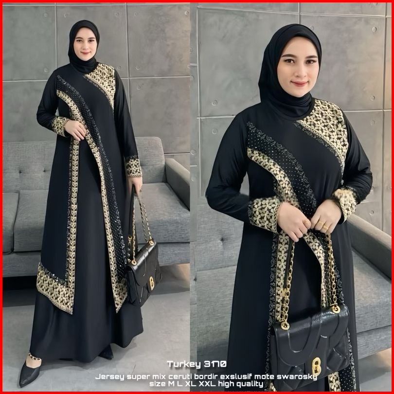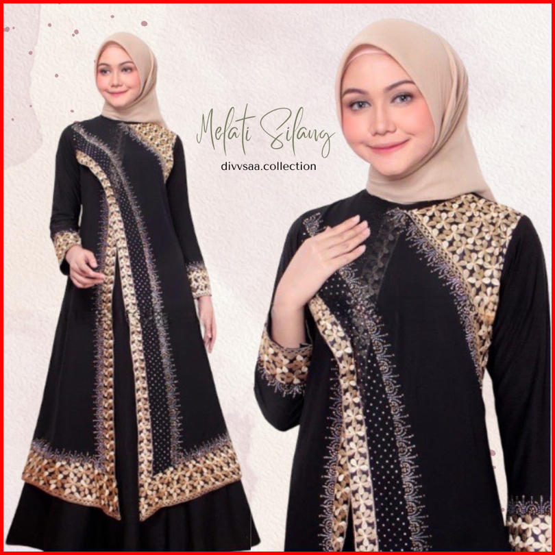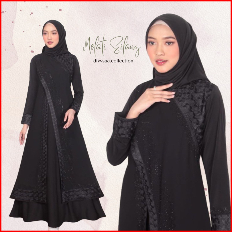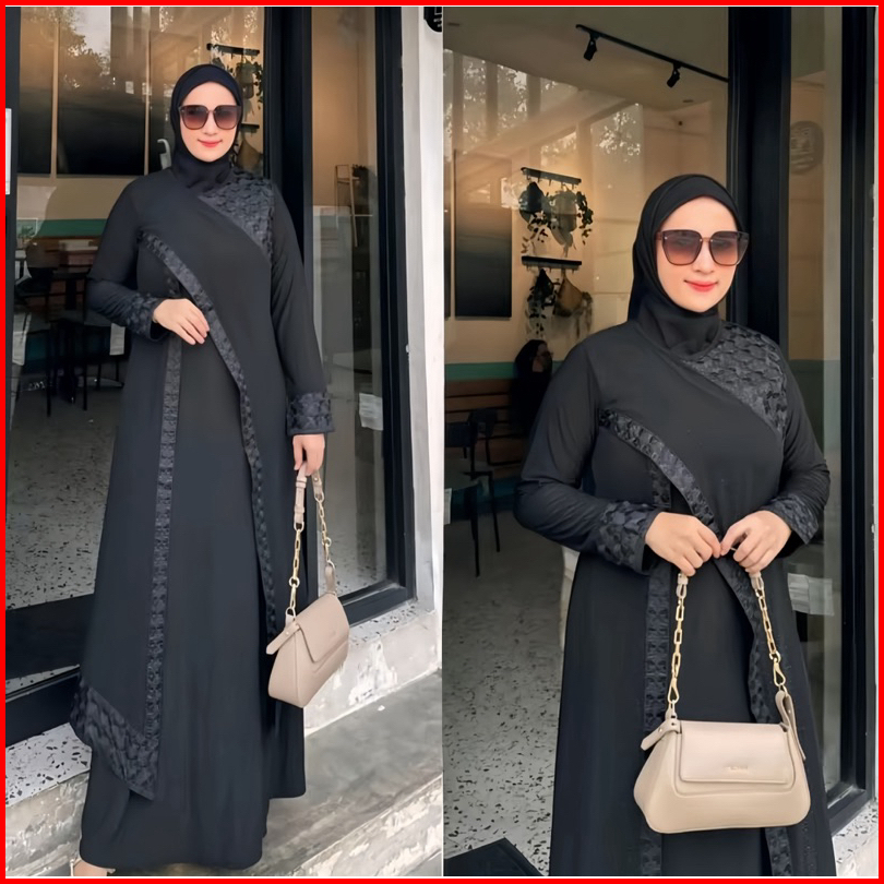 Abaya Gamis Hitam Bordir Turkey 1175 Melati Silang 7 Warna Realpict