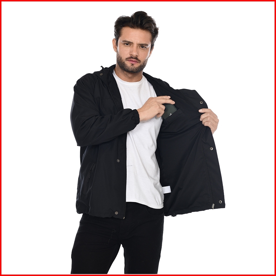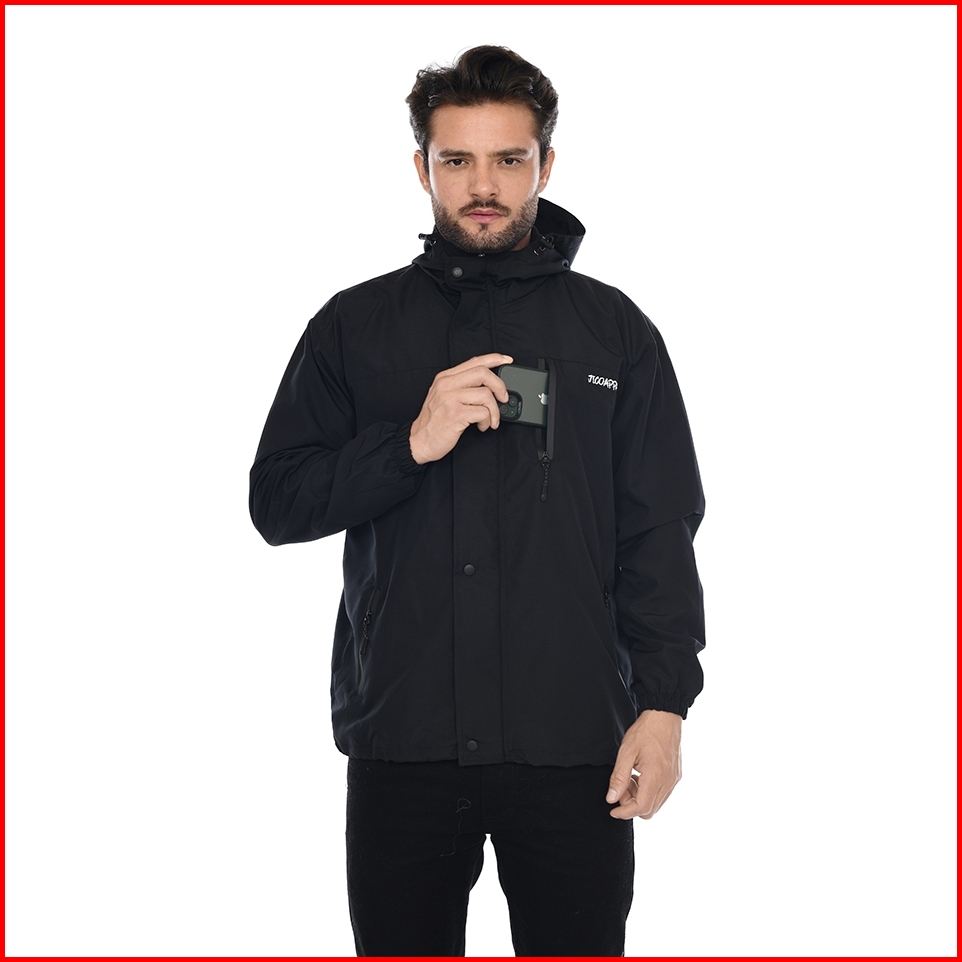 Jico - Jaket Parasut Outdoor Waterproof Windbreaker Taslan Alpha Hitam