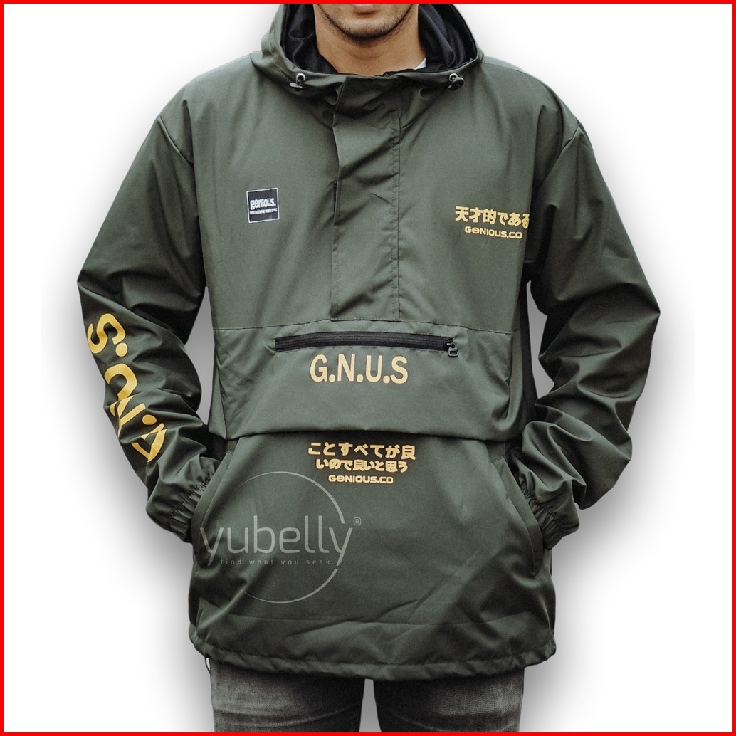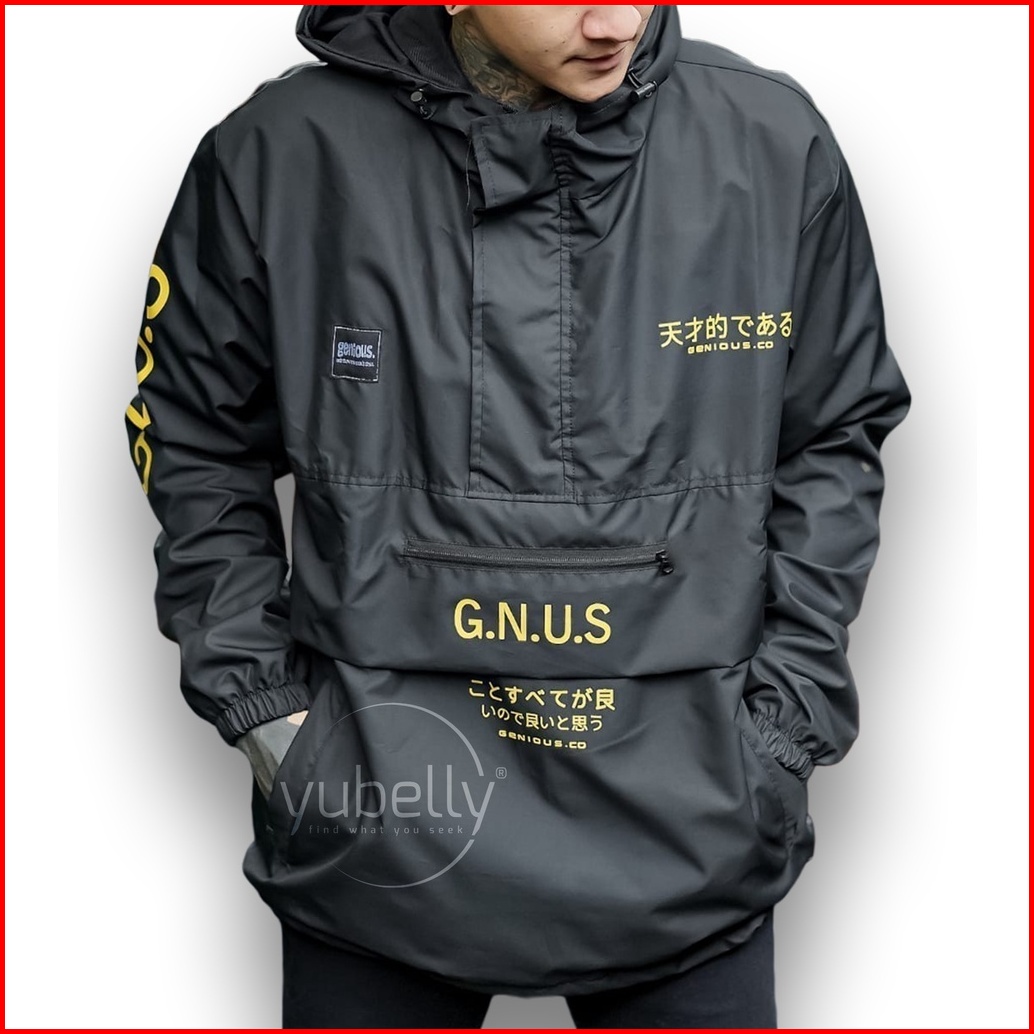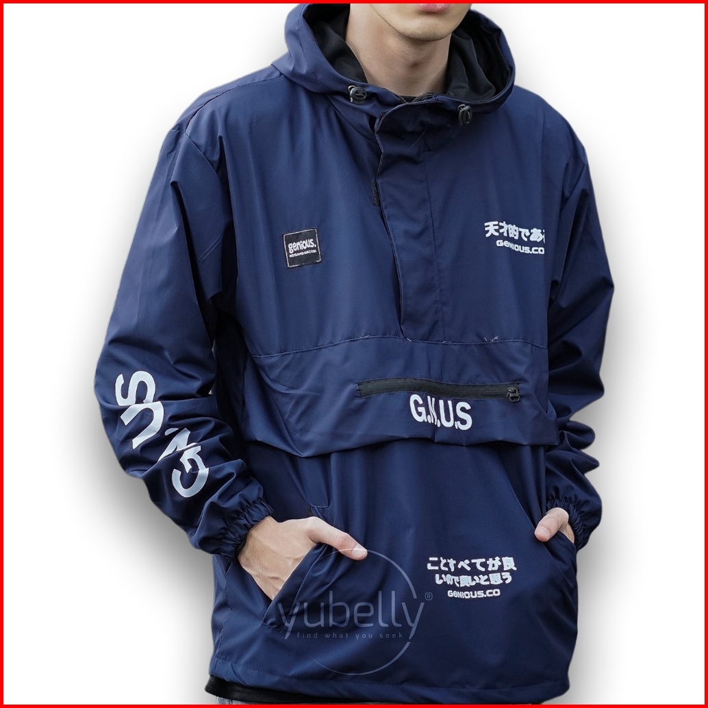 Jaket Cagoule Pria Kanji Jepang Original Distro Genious Jacket Outdoor Pria Waterproof Kantong Doraemon Jaket Parasut Pr
