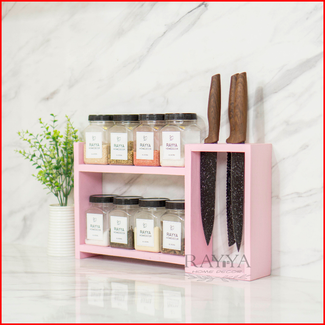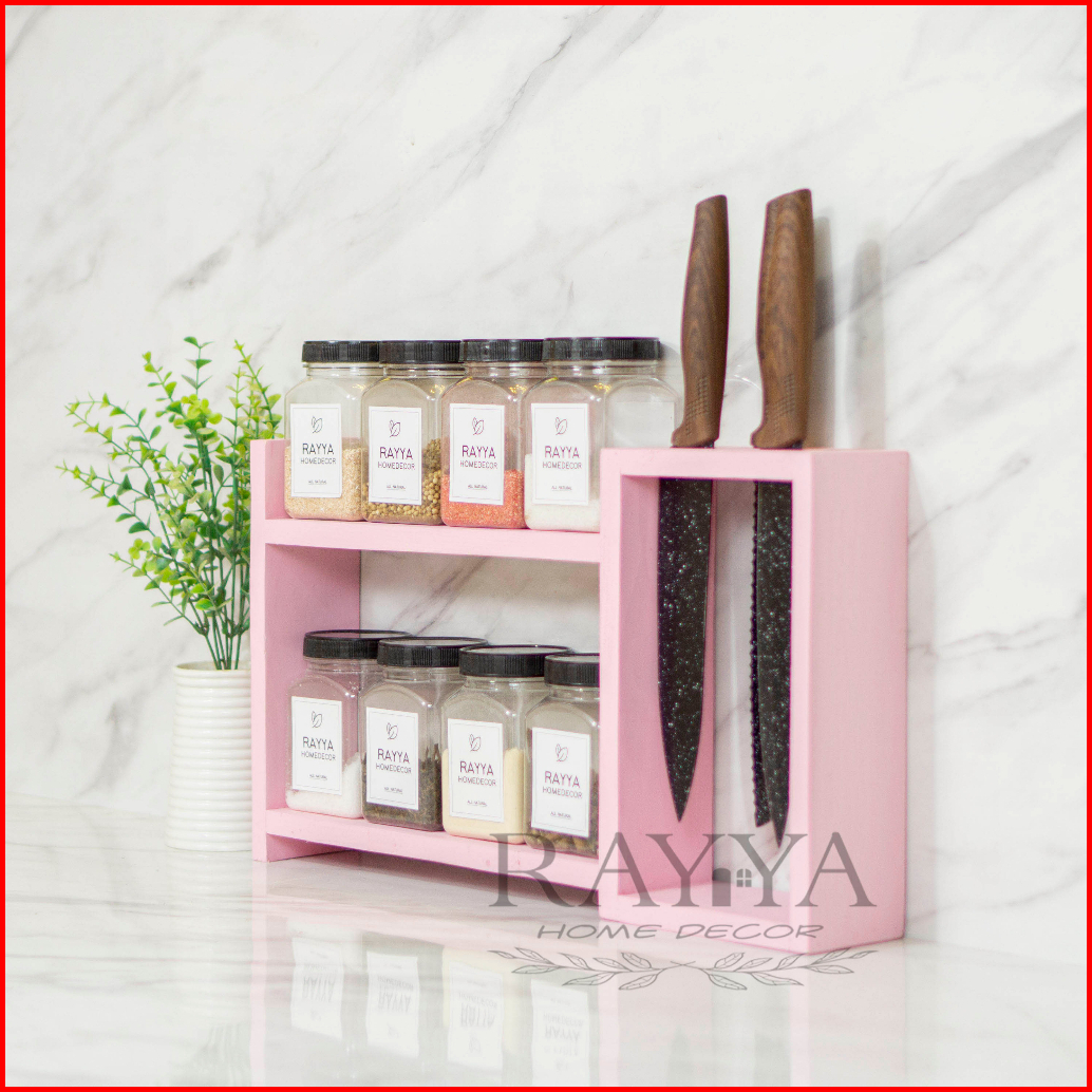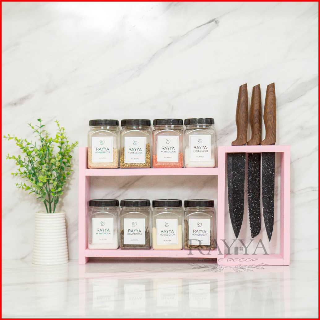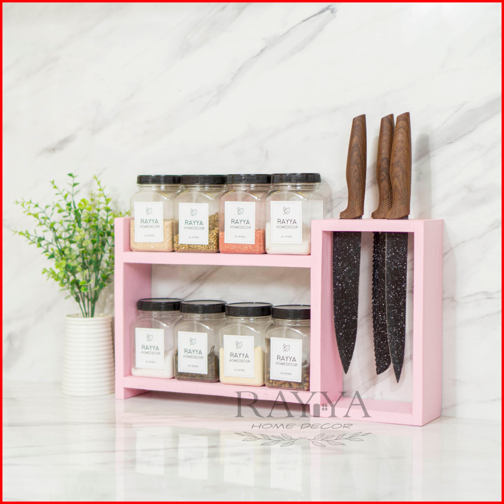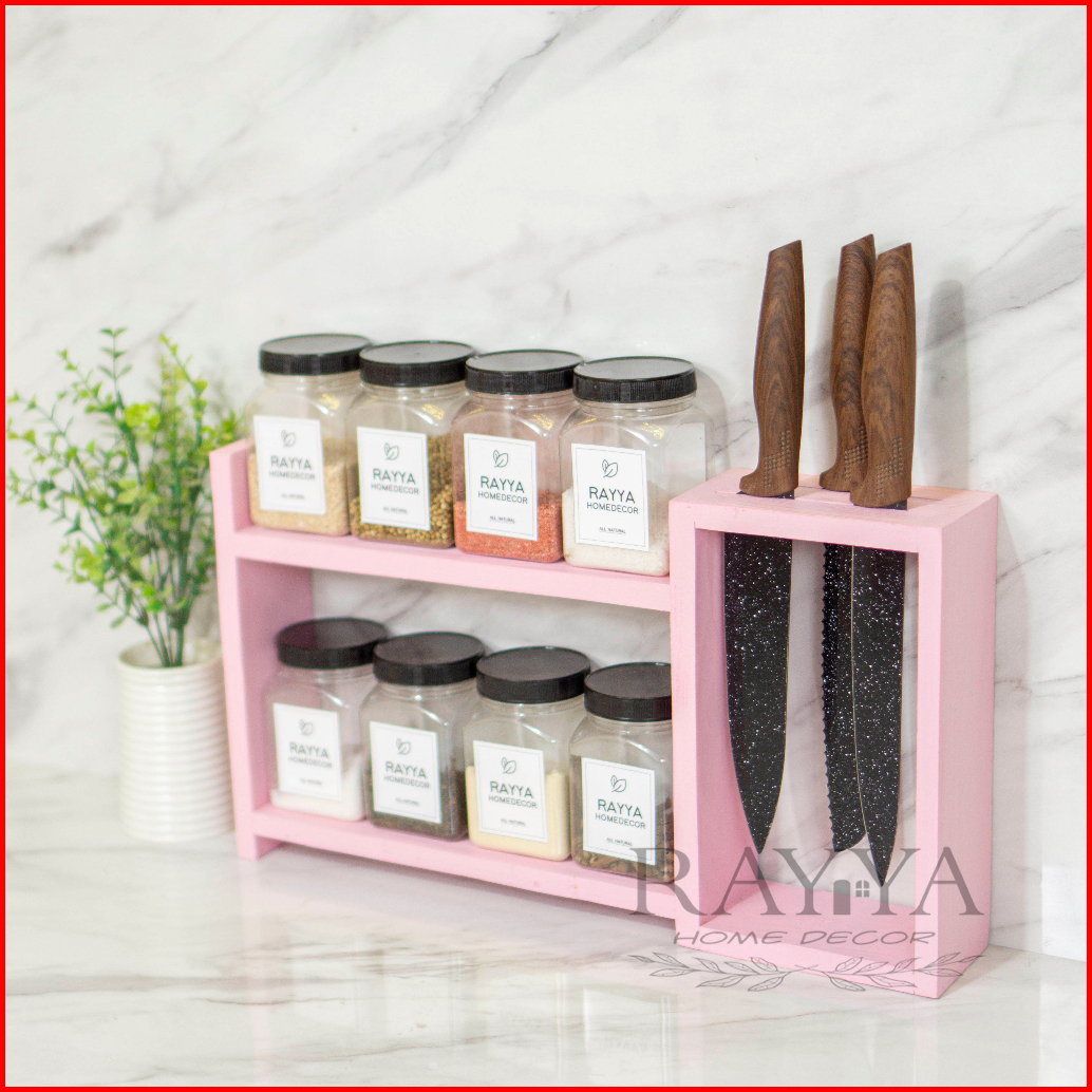 Rak Tempat Pisau Kayu Rak Toples Bumbu Dapur