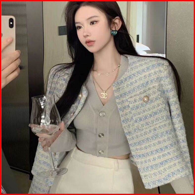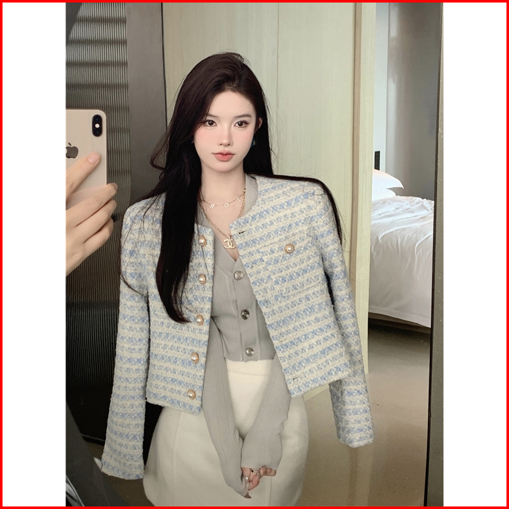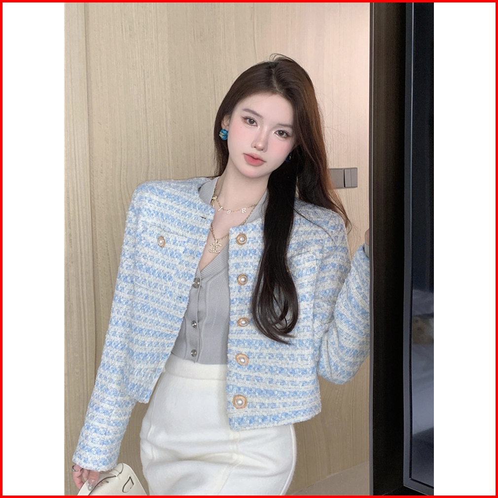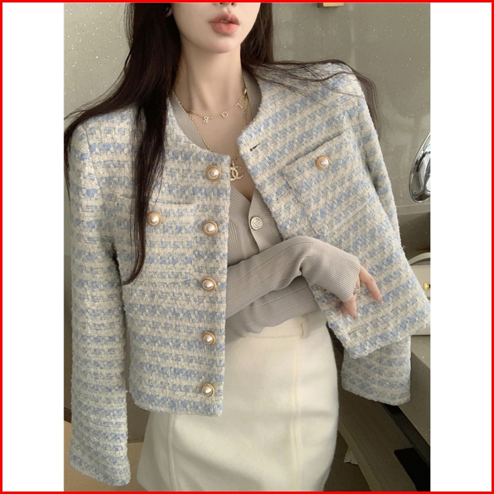 Versi Korea Dari Mantel Kancing Mutiara Angin Yang Indah Mantel Wanita Kaya Wanita Biru Atasan Gadis Mantel Prancis Tenu