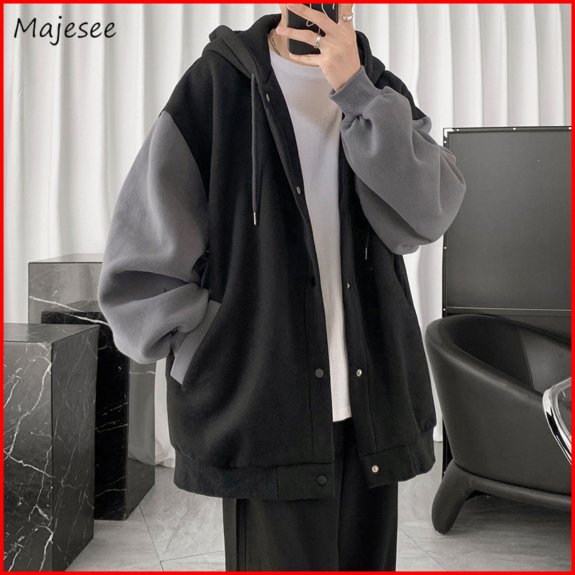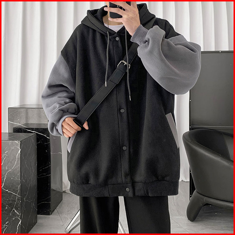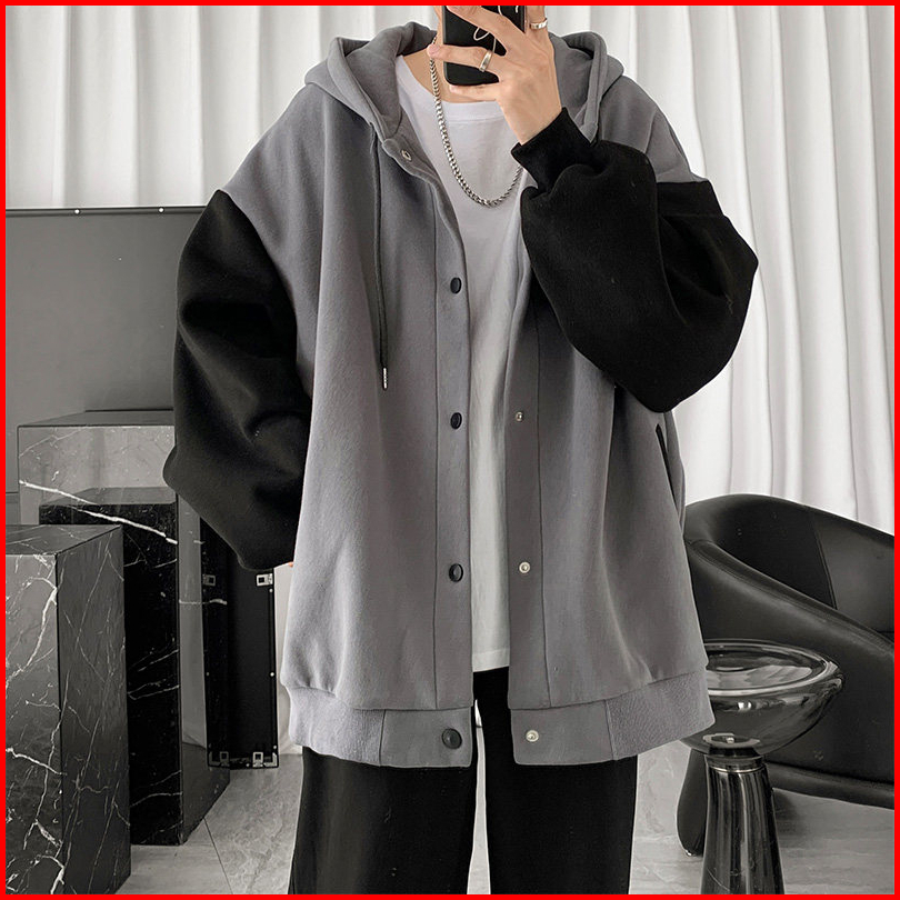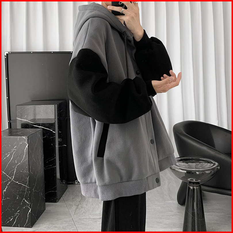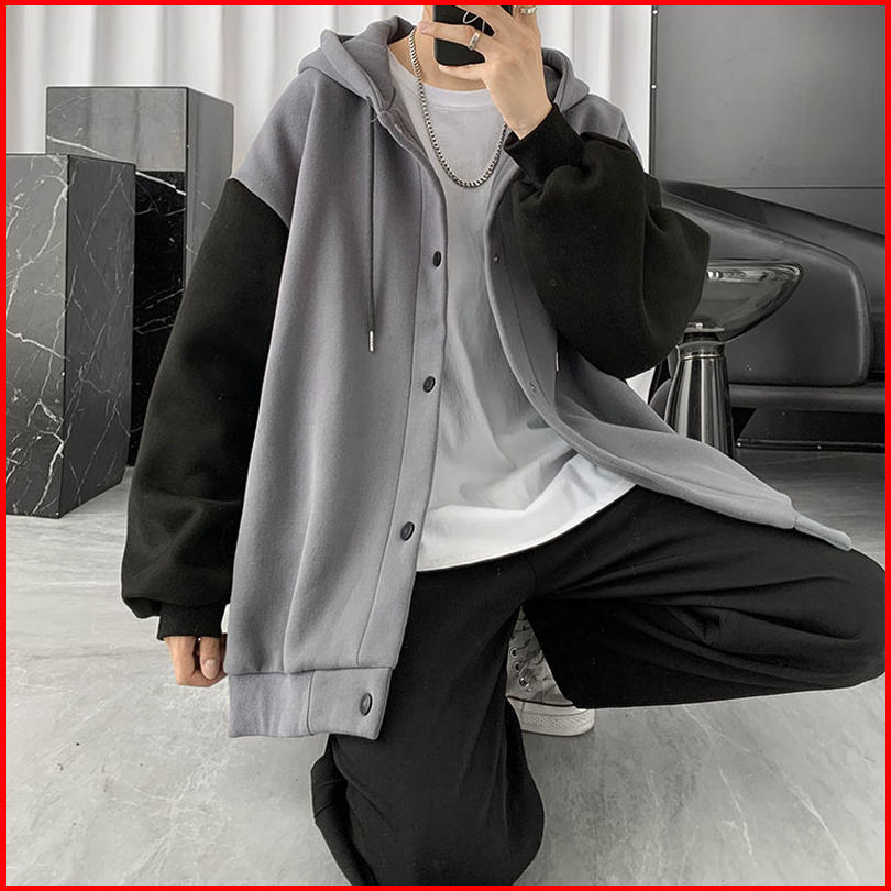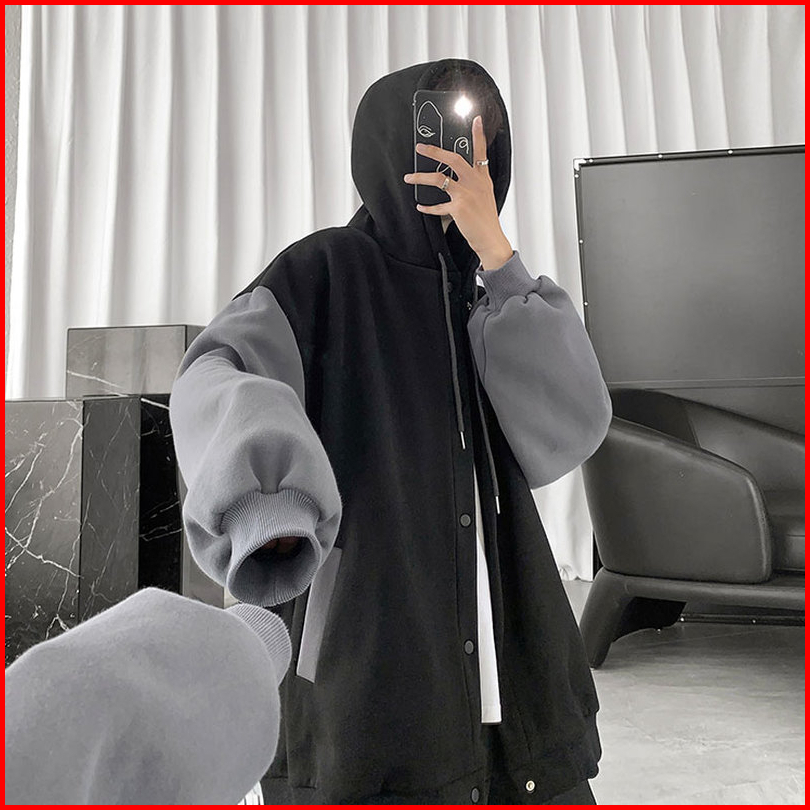 S - Xxxxxl 6xl Hoodie Polos Kancing Kombinasi Silver Hitam Jumbo Bigsize Jaket Fleece Korean Style Wanita Pria Oversize