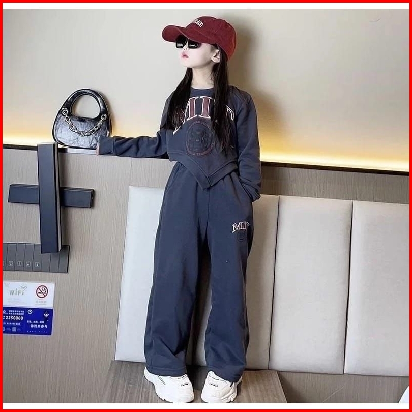 Setelan Anak Perempuan Dari Umur 4-14 Tahun Bahan Baby Terry Tebal