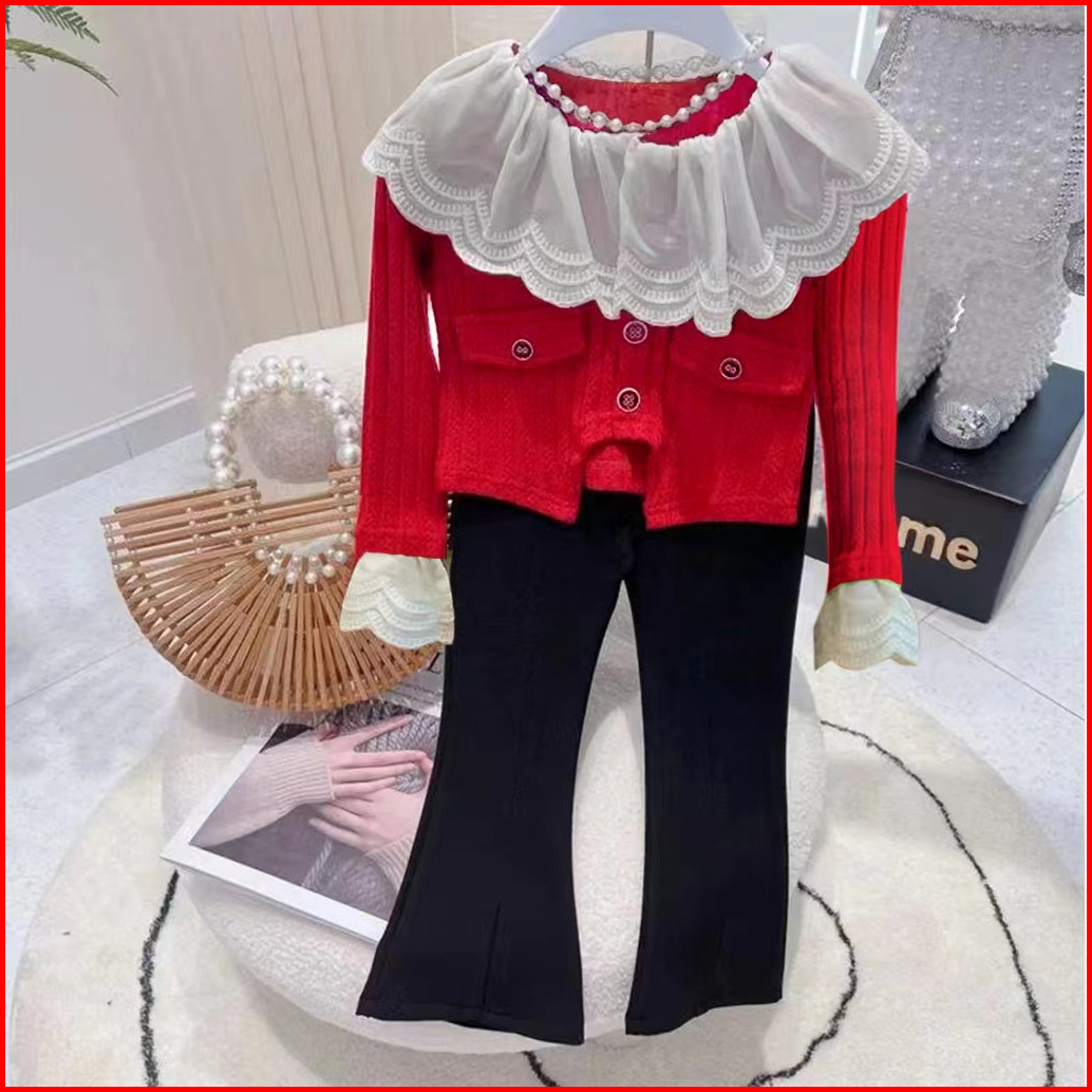 Kd88 Setelan Set 2in1 Anak Perempuan Rajutan Knitted Shirt Pants