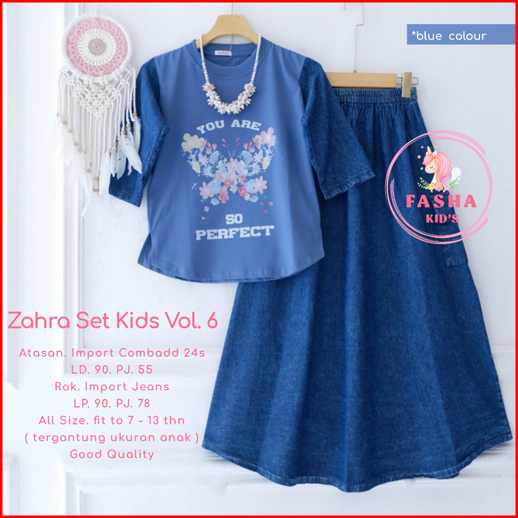 Shopakids Pietta Nevi Zahra Set Kids Setelan Kaos Rok Bahan Jeans Terbaru By Fasha Kids
