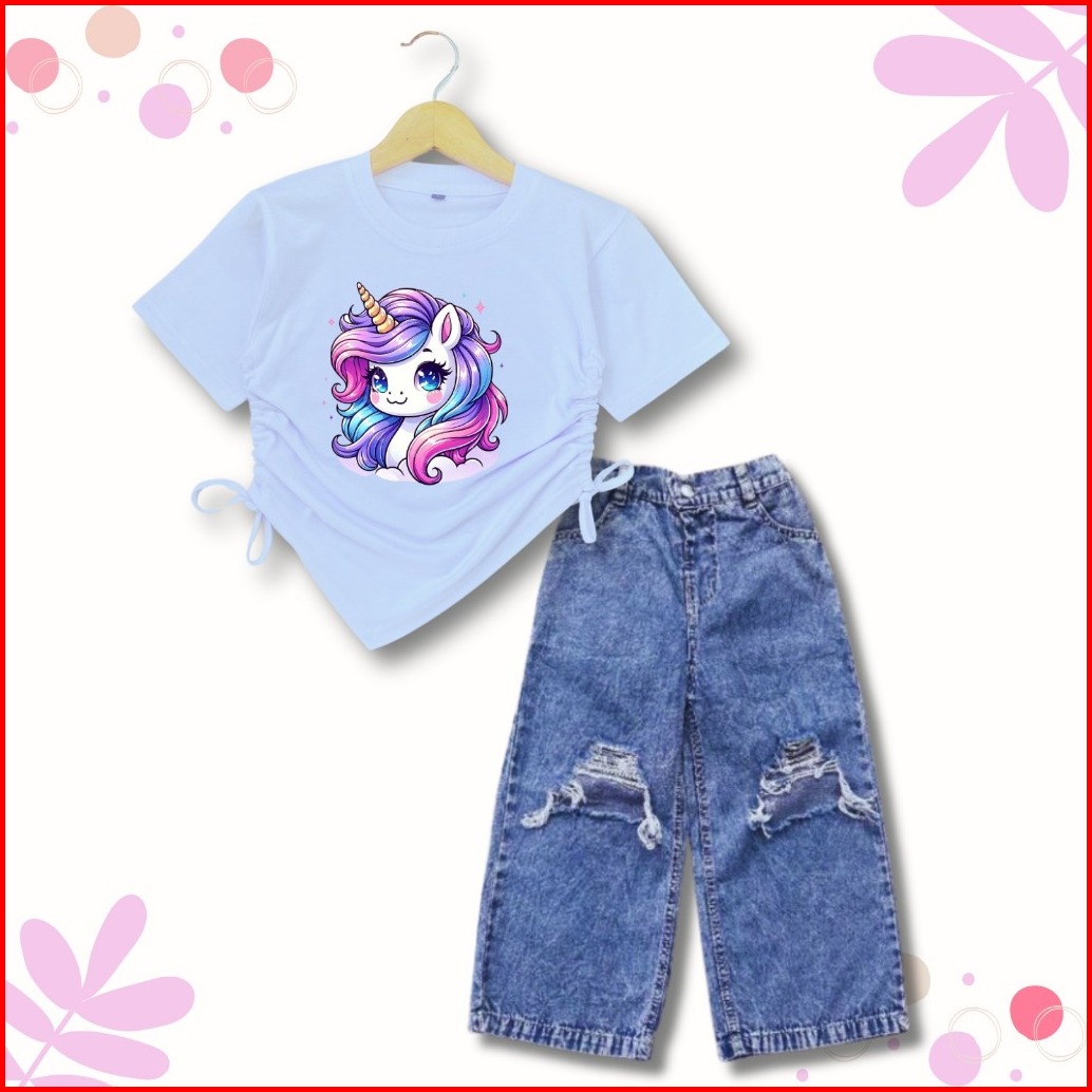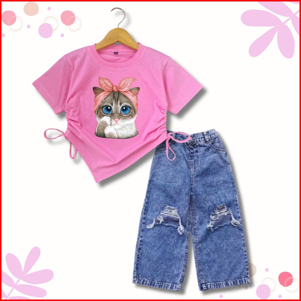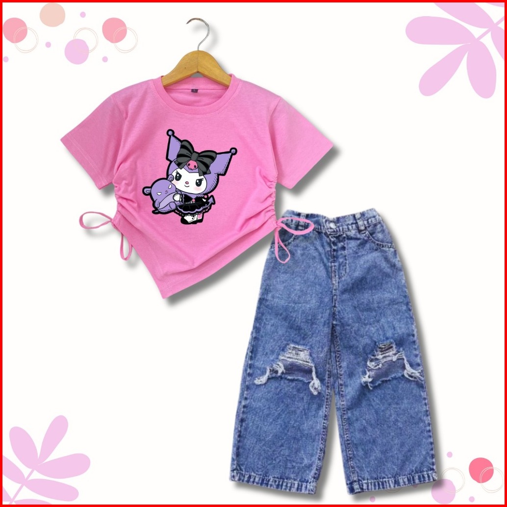 Setelan Kulot Sobek Kaos Crop Anak Perempuan 1-10 Th