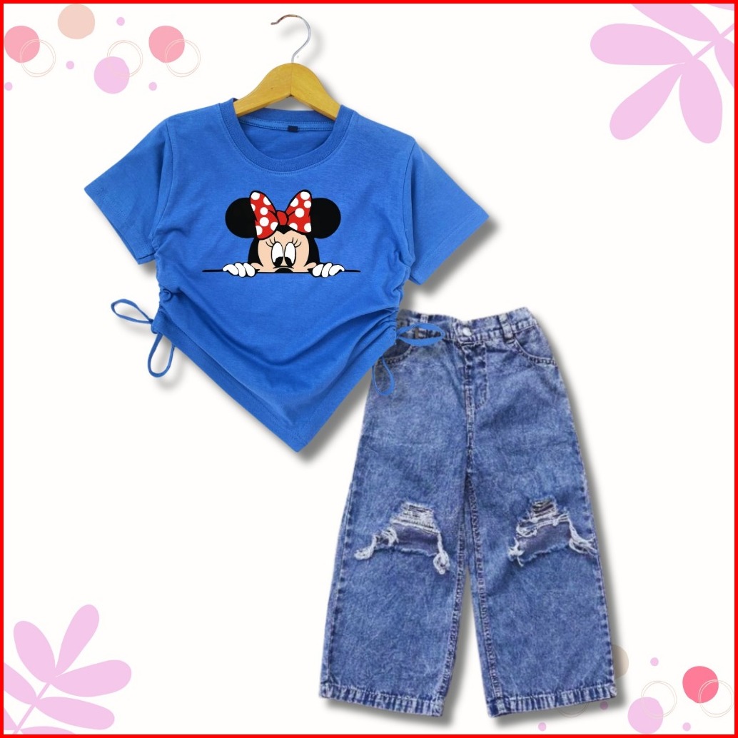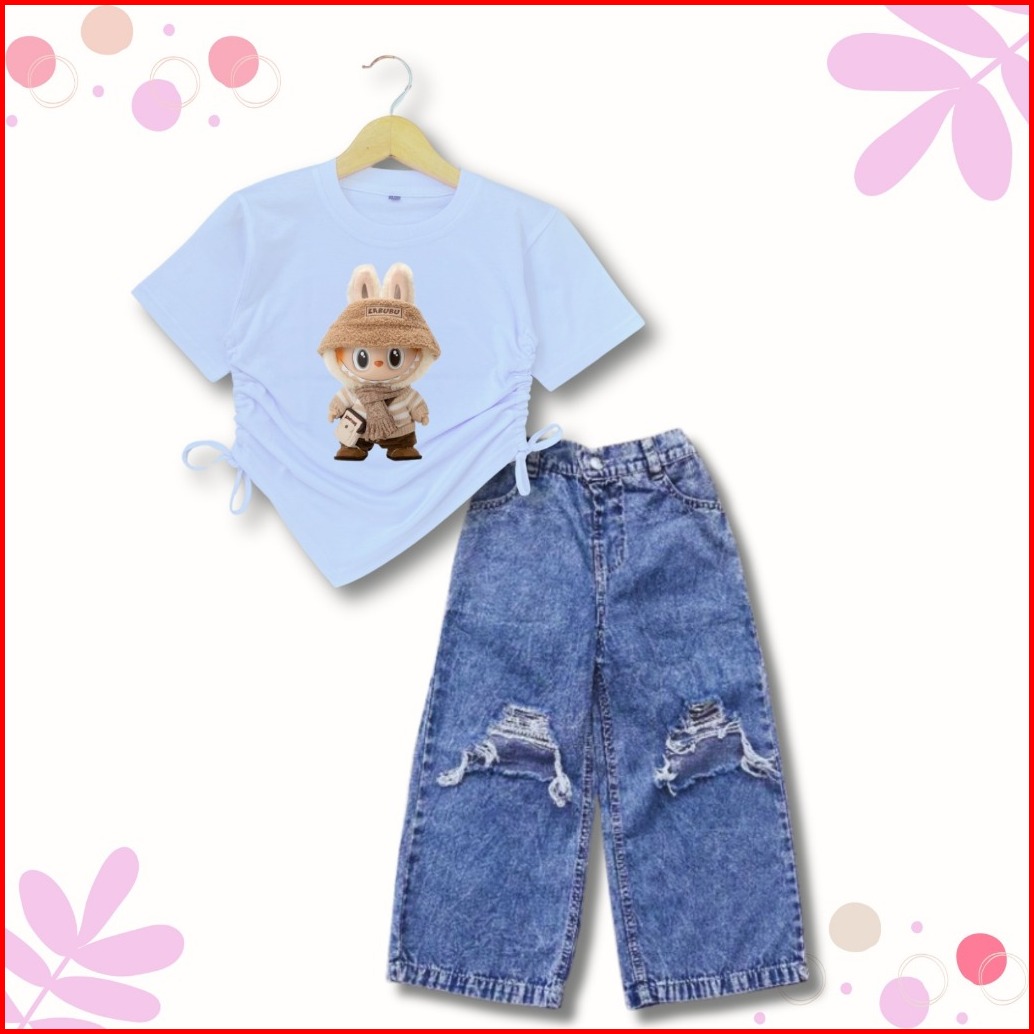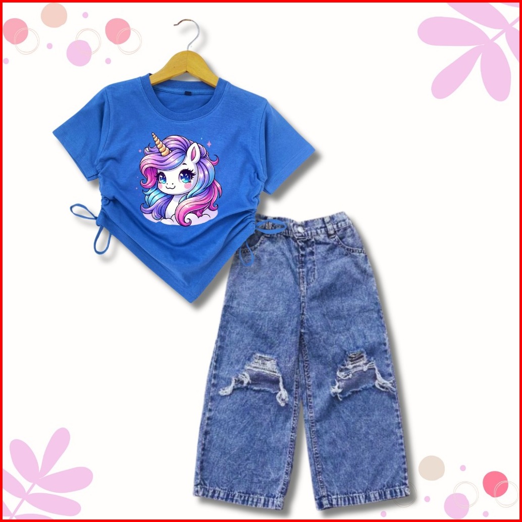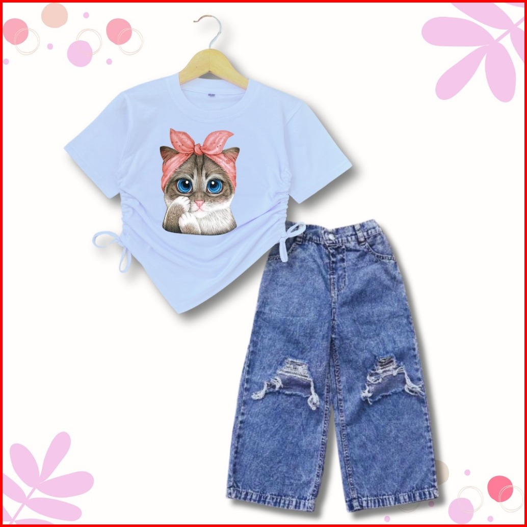 Setelan Kulot Sobek Kaos Crop Anak Perempuan 1-10 Th