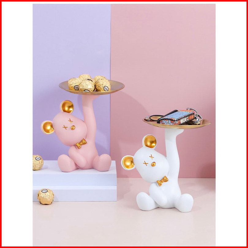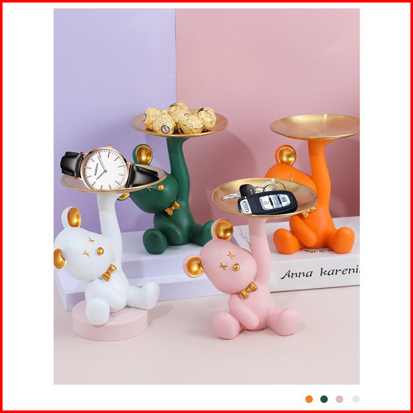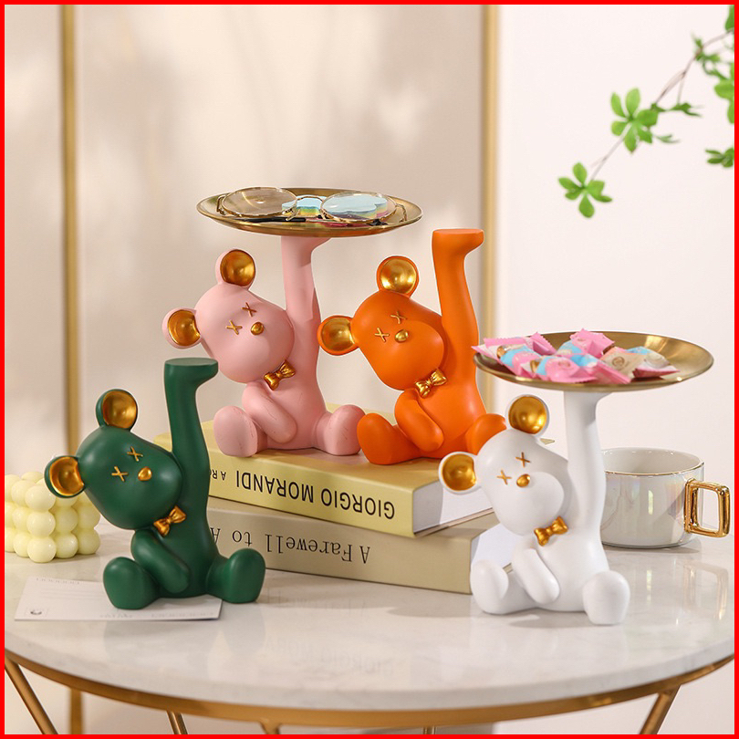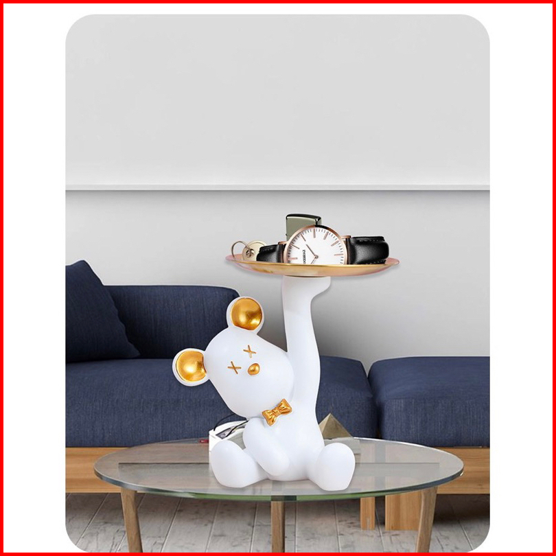 Meja Nordic Bear Nampan Penyimpanan Kreatif Patung-patung Ornamen Ruang Tamu Teras Meja Rumah Resin Dekorasi Kunci Penyi