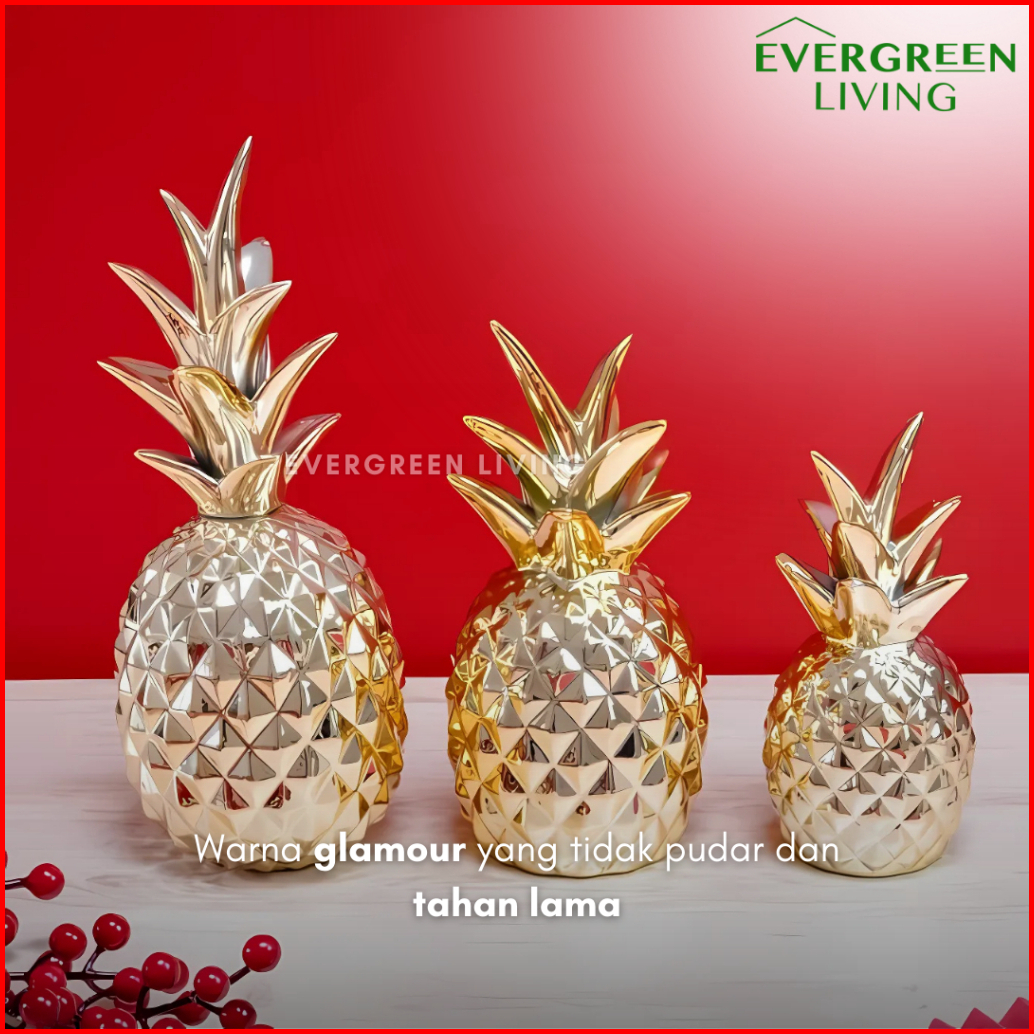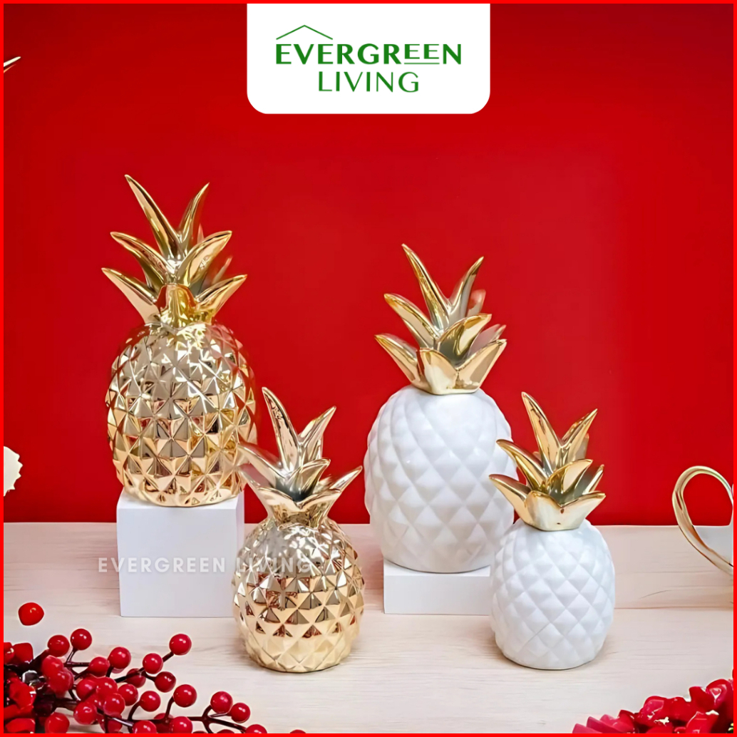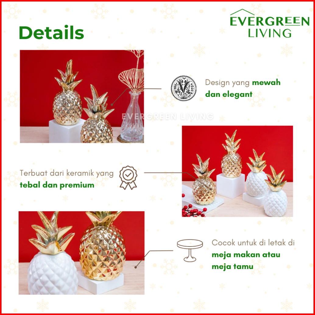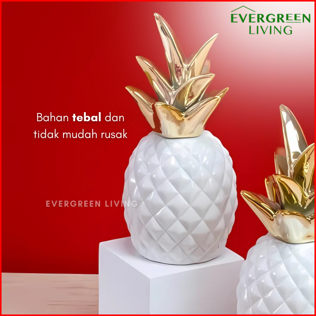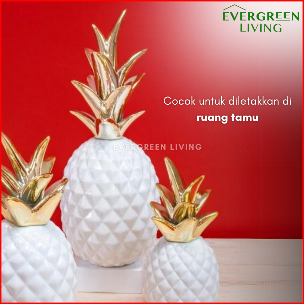 Evergreen Dekorasi Nanas Putih Keramik - Pajangan Hiasan Nenas Pineapple White Decor Klasik Dekor Ruangan Rumah Keramik