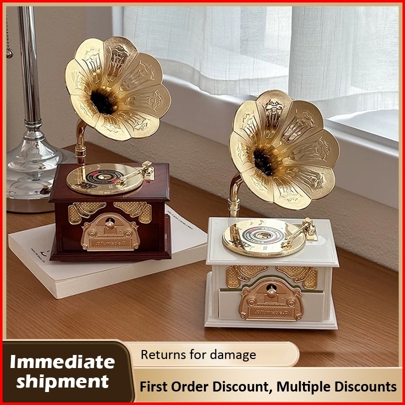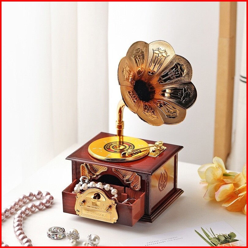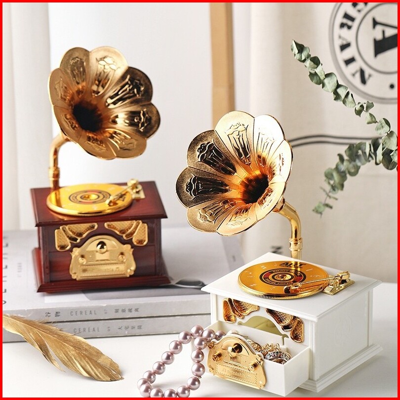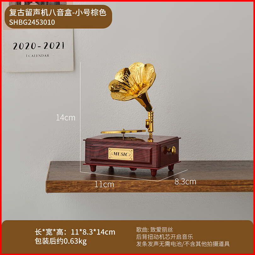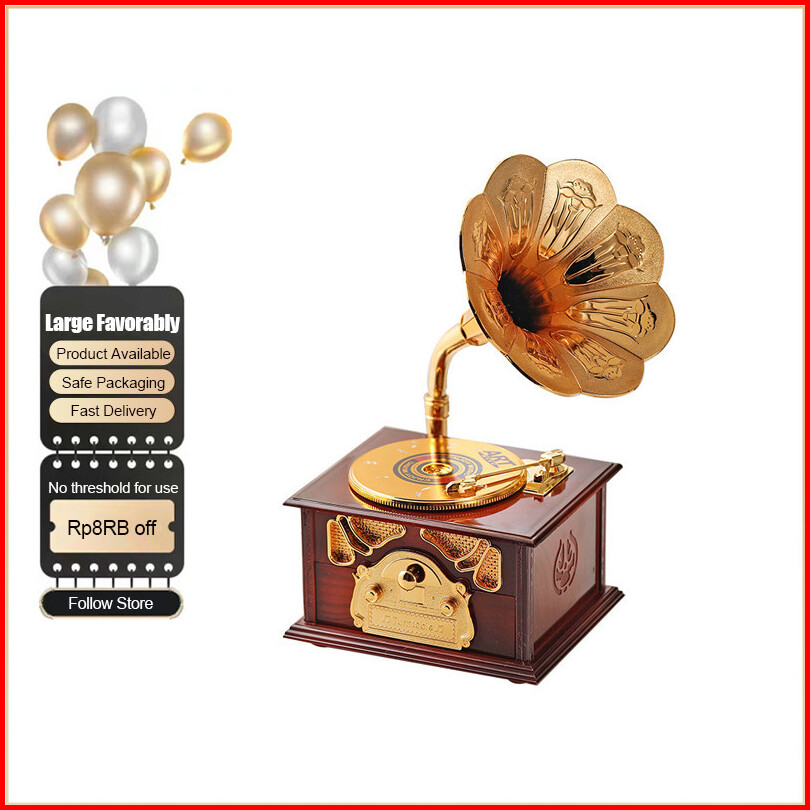 Colins Vintage Antik Kayu Logam Fonograf Kotak Musik Untuk Dekorasi Desktop Rumah Kreatif Tangan Engkol Kotak Musik Orna