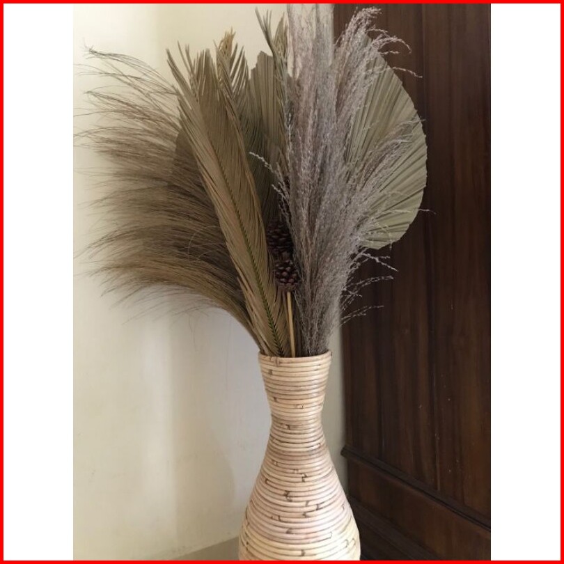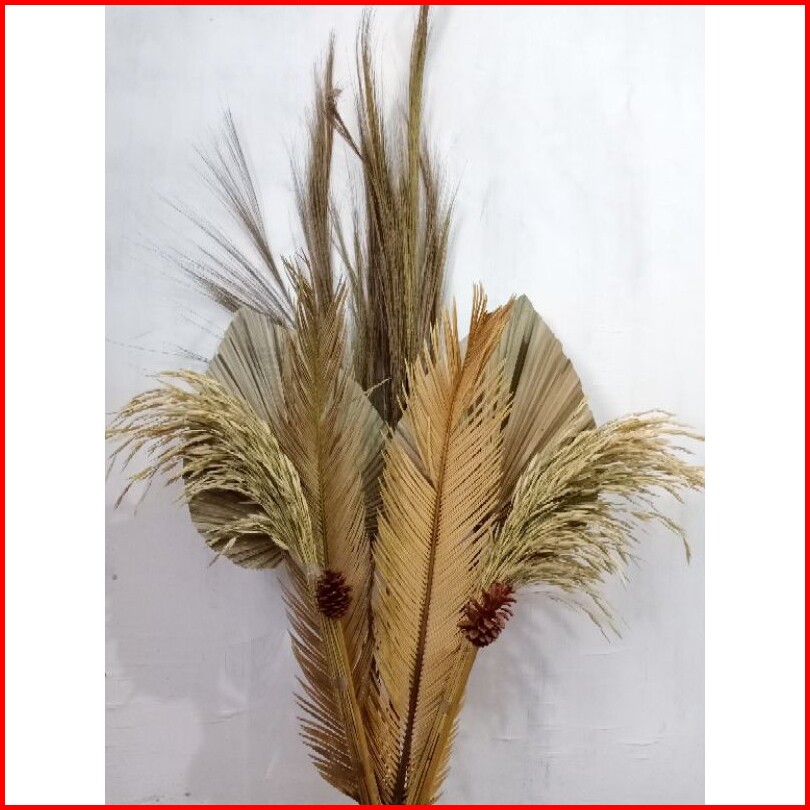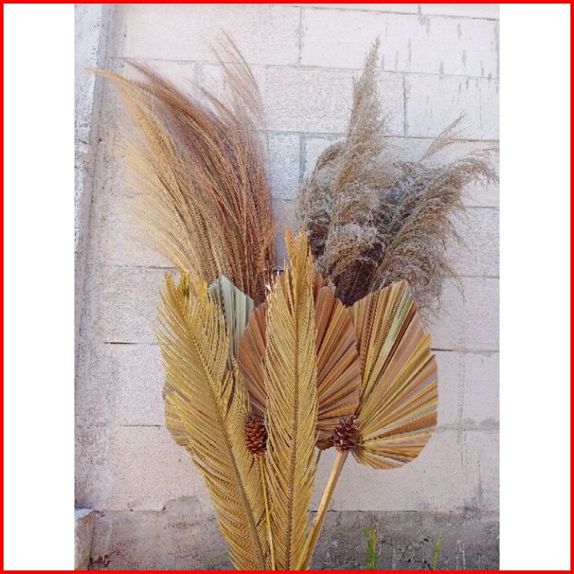 Paket Hemat Tanpa Vas Pampas Daun Palem Kering Bunga Kering Free Pinus Tangkai Hampers Bunga Kering Aesthetic Rustic Dek