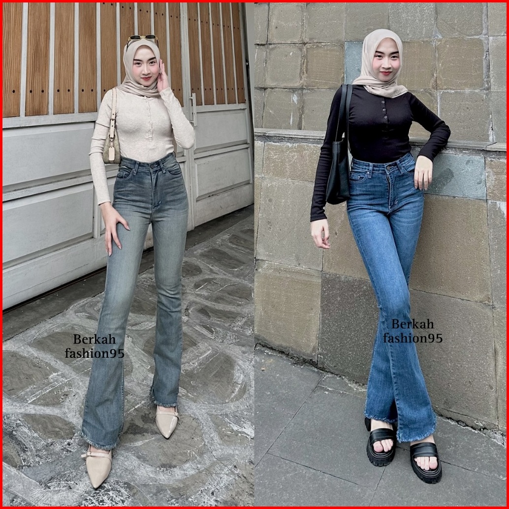 Celana Jeans Premium Leisyha Cutbray Rawis Cutbray Jeans Wanita