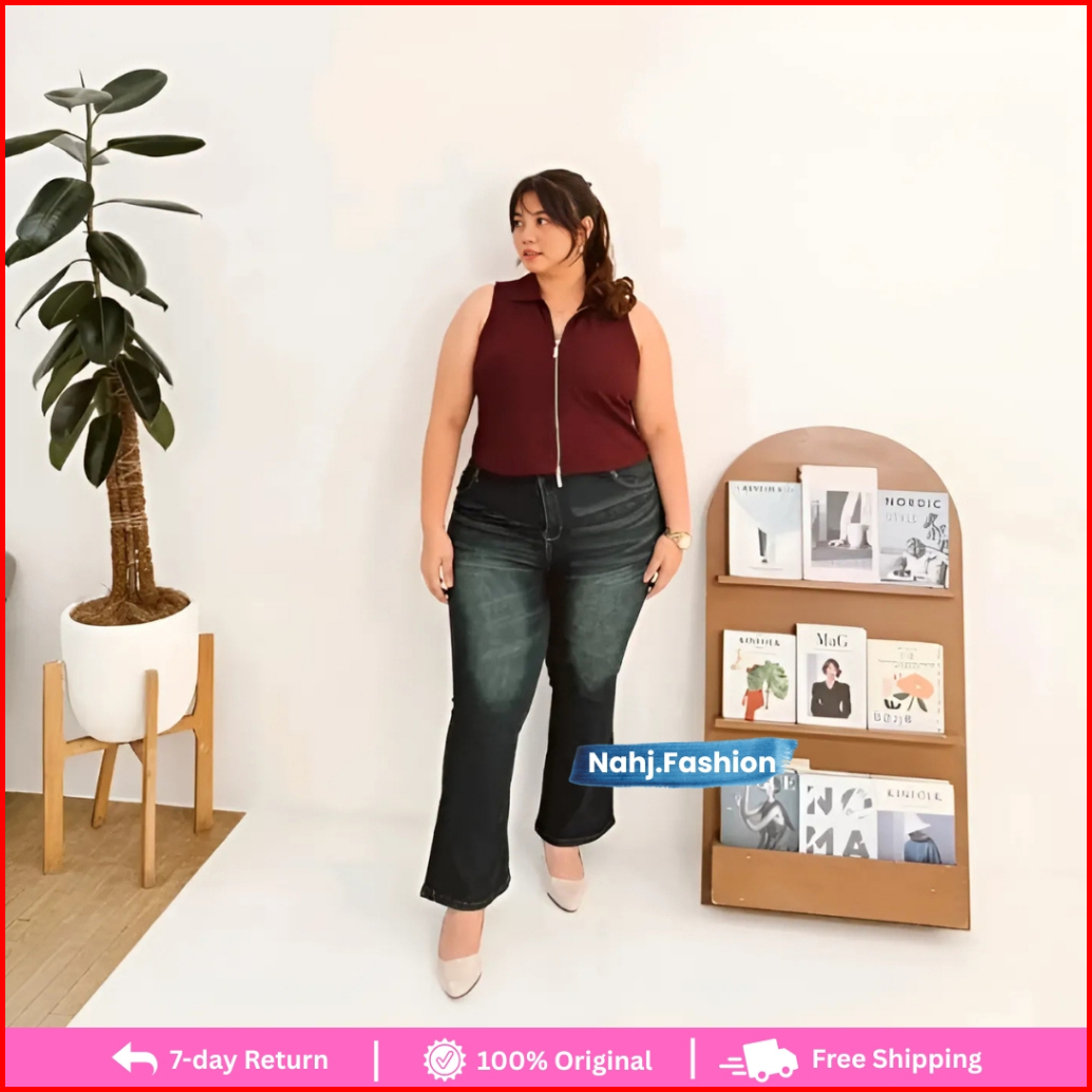 Hw Cutbray Jeans Retro Whisker Wanita Jumbo Big Size 35-38 39-42 - Celana Panjang Cutbray Wanita Strechy Melar Korean St