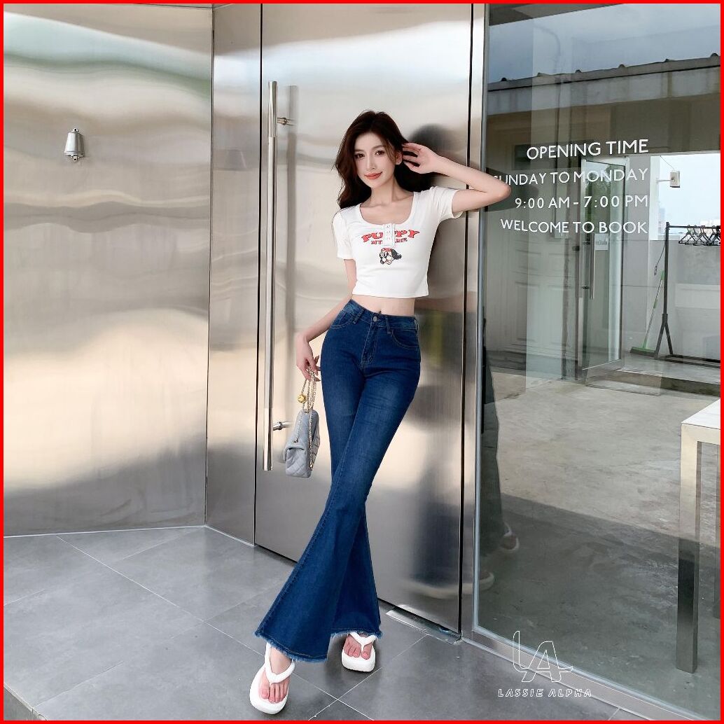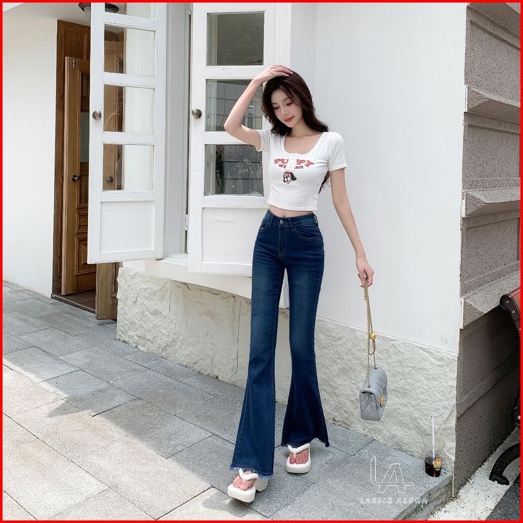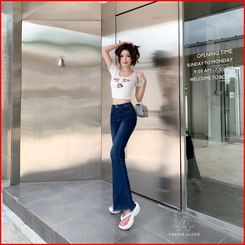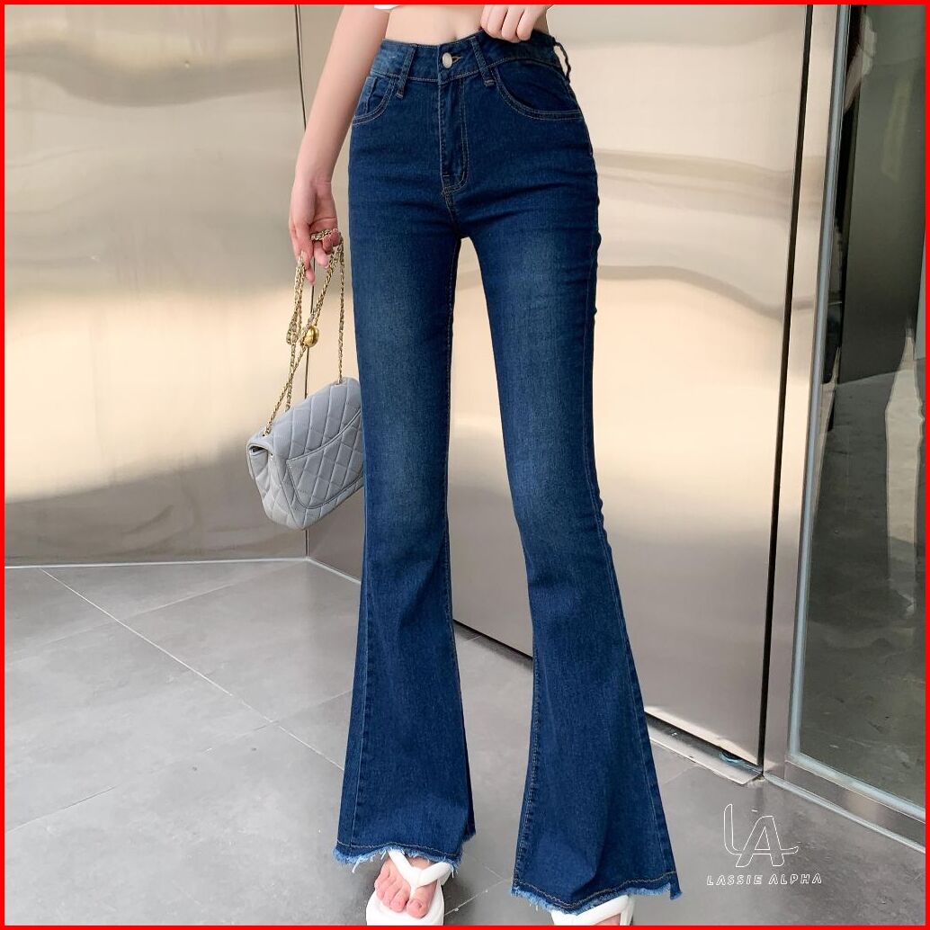 Lassie Alpha J83 Ready Stok Celana Jeans Wanita Celana Wanita Berkobar Hw Pinggang Tinggi Cutbray Celana Skinny Korean F