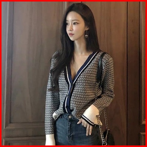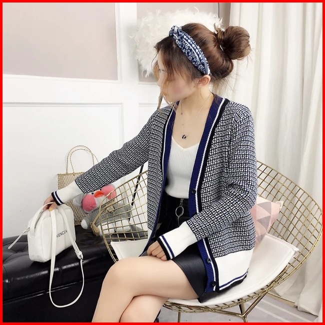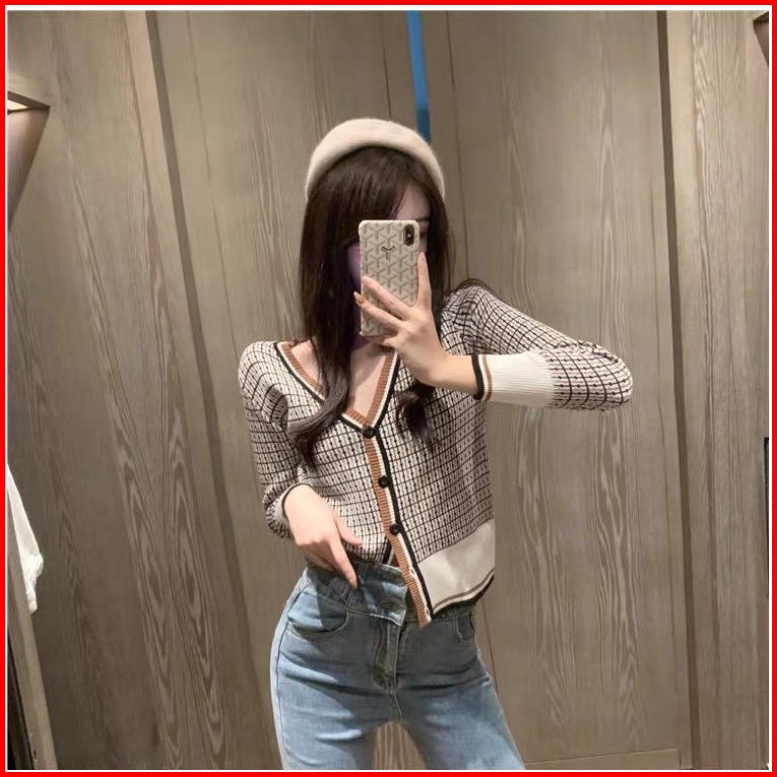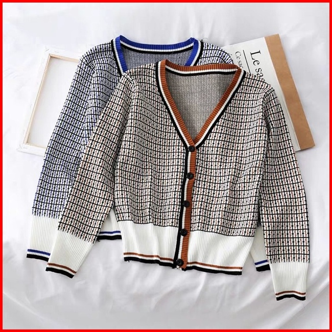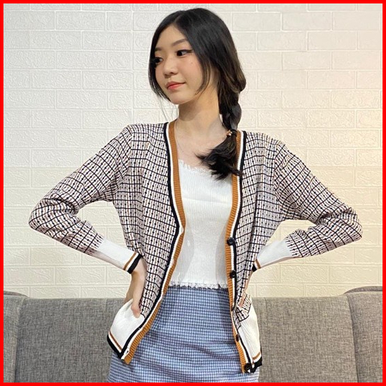 Ysk 39007 Cardigan Rajut Korea Wanita Motif Kotak - Outer Kekinian Stylish All Size