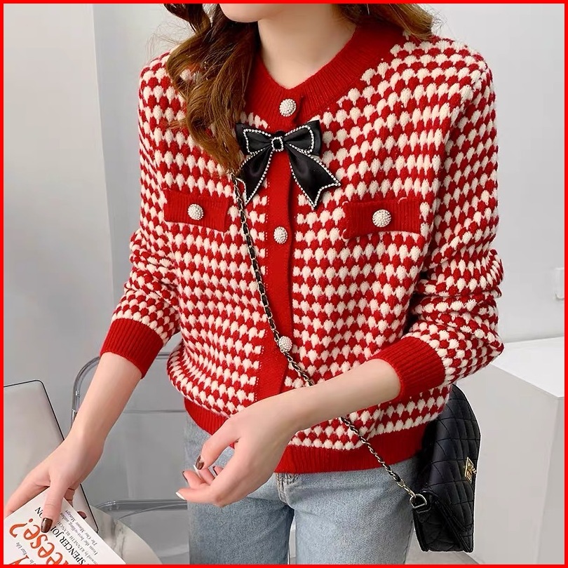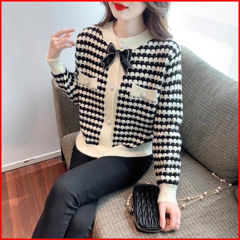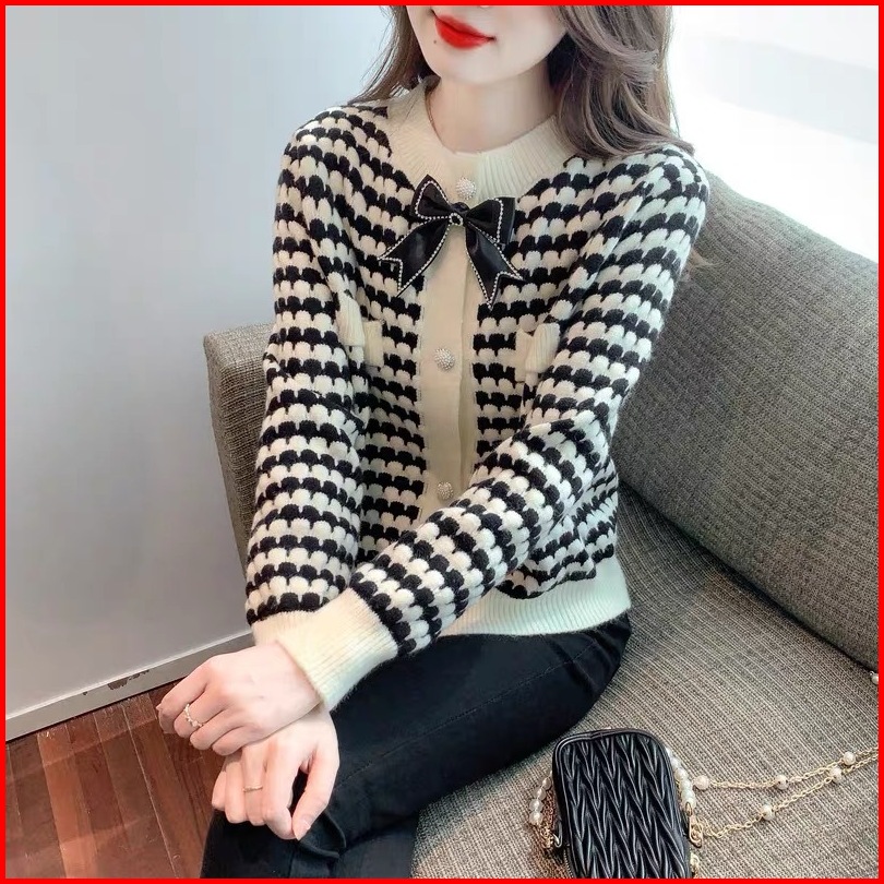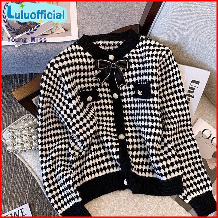 Lulu-cardigan Wanita Knit Import Premium Pita Timbul 3d Chest Black