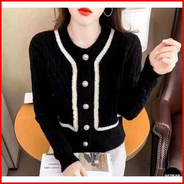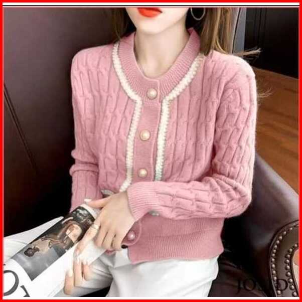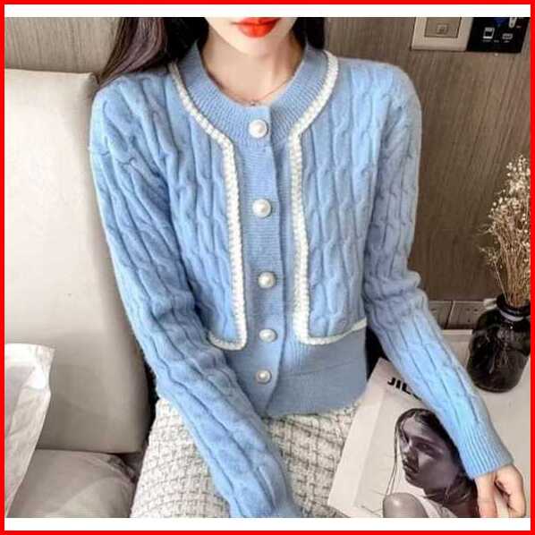 Cardigan Rajut Kancing Mutiara Motif Ceble Cardiga Rajut Wanita