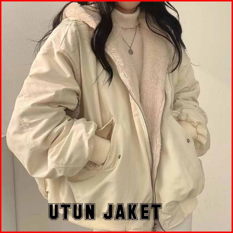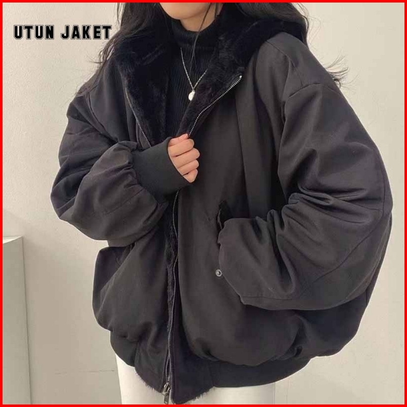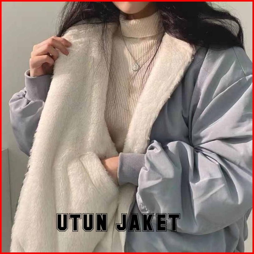 Jaket Wanita Musim Dingin Hoodie Bulu Tebal Terbaru Jaket Cewek Parasut Jaket Bulak Balik