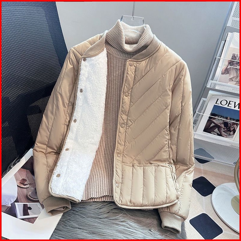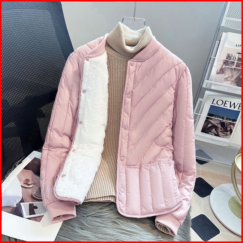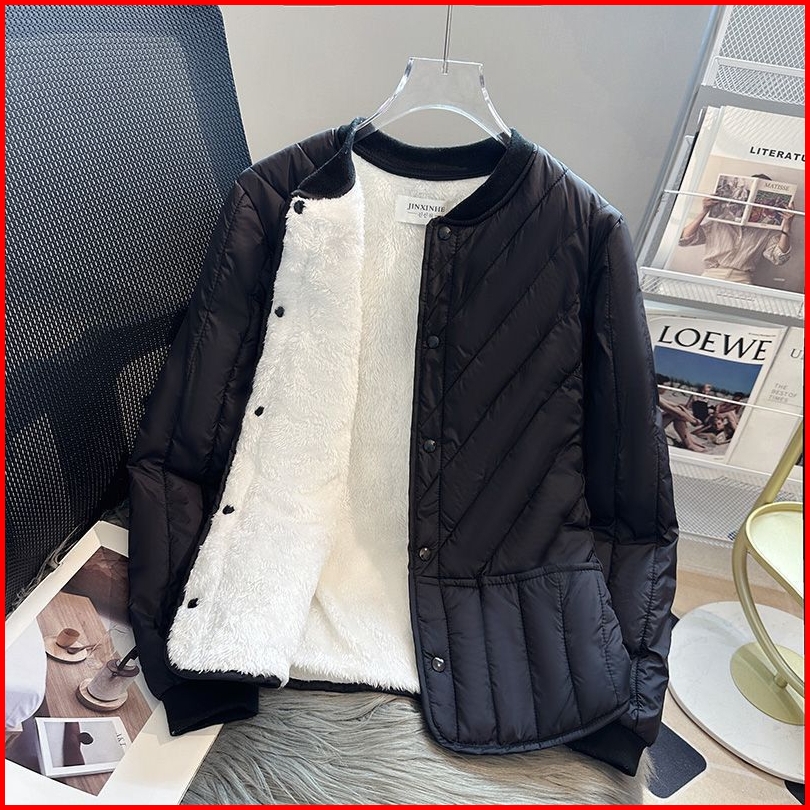 Jaket Wanita Musim Gugur Dan Dingin Baru Berlapis Bulu Pendek 2025 Pakaian Katun Tebal Hangat Beludru Baru Mantel Rampin